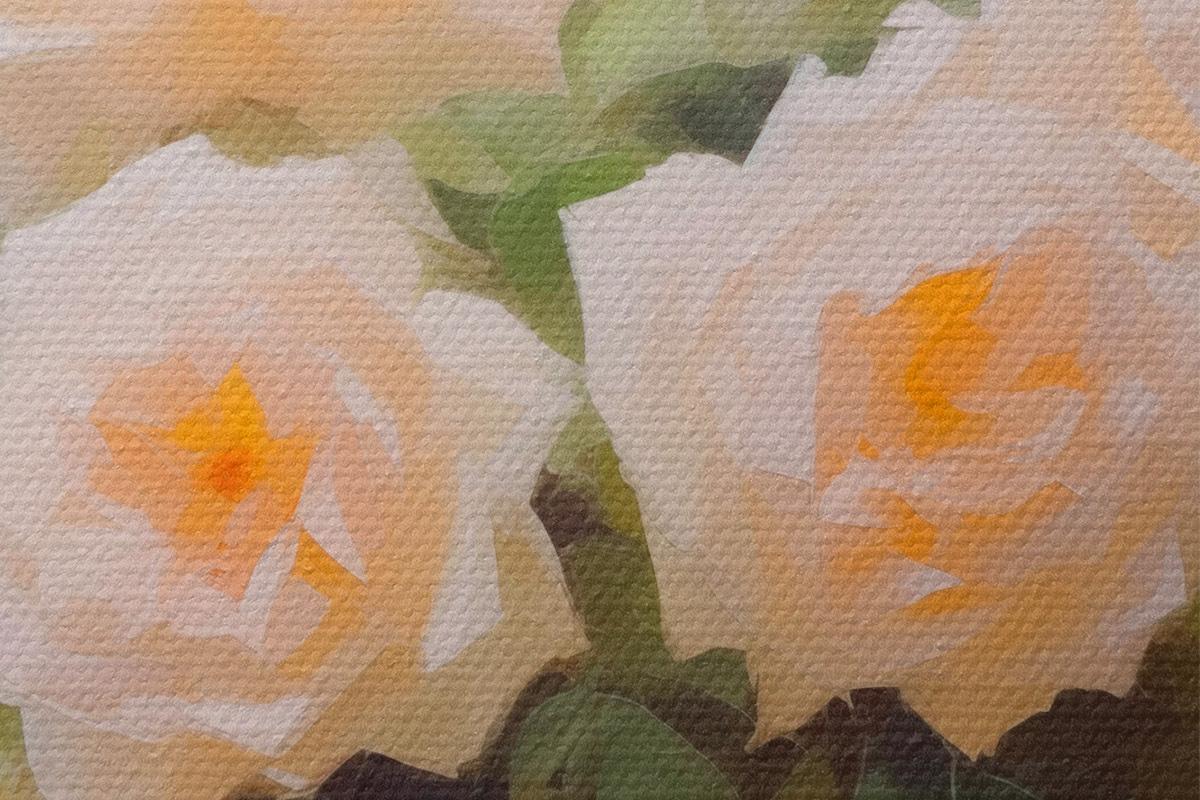 Het is een goedkopere versie van canvas. Het is duurzamer en vochtbestendiger, maar het oppervlak heeft niet zo'n uitgesproken textuur als Premium Canvas