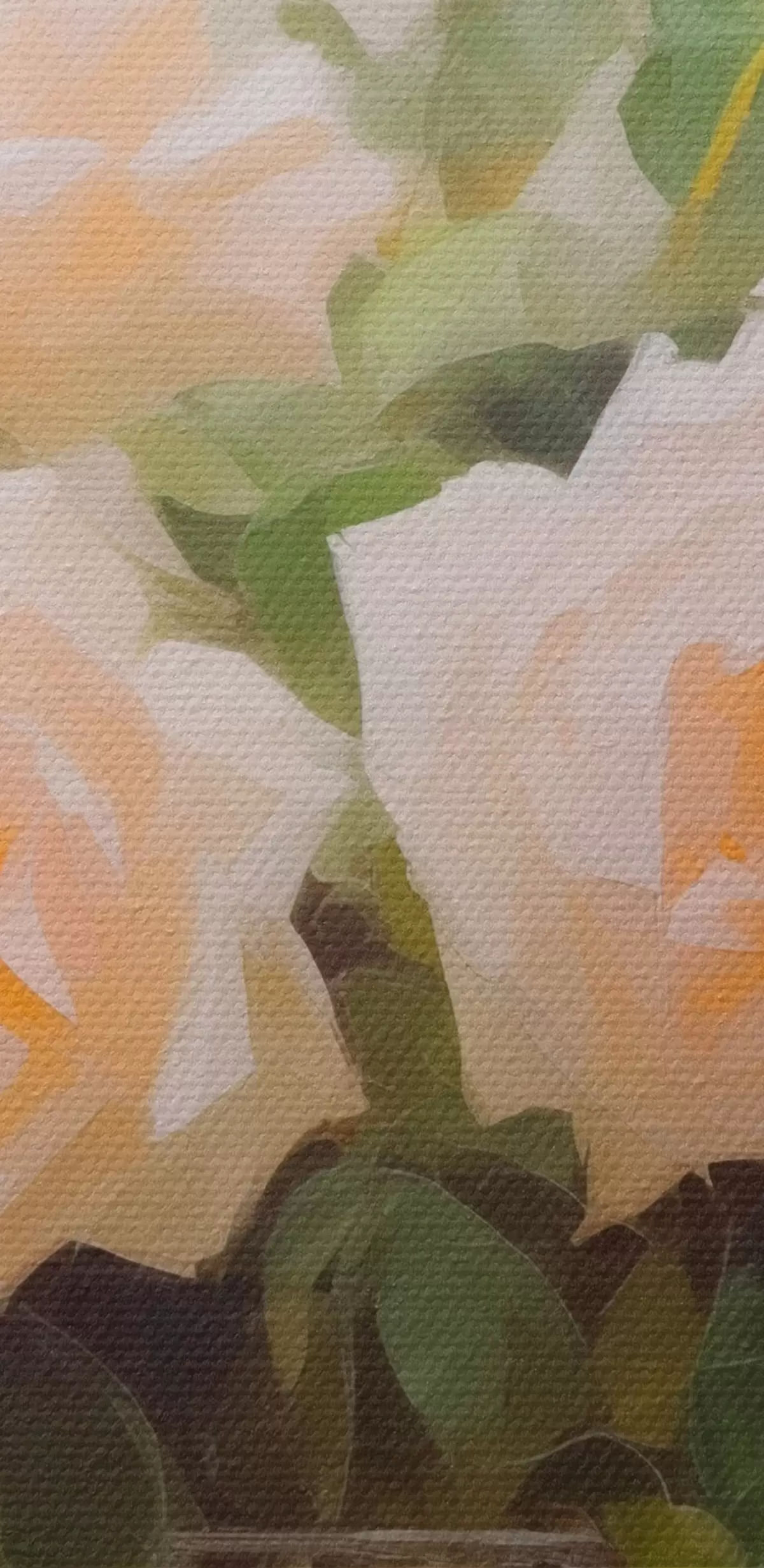 Het schilderij kan direct na ontvangst worden opgehangen. Het schilderij wordt opgespannen op een 2 cm breed houten spieraam.