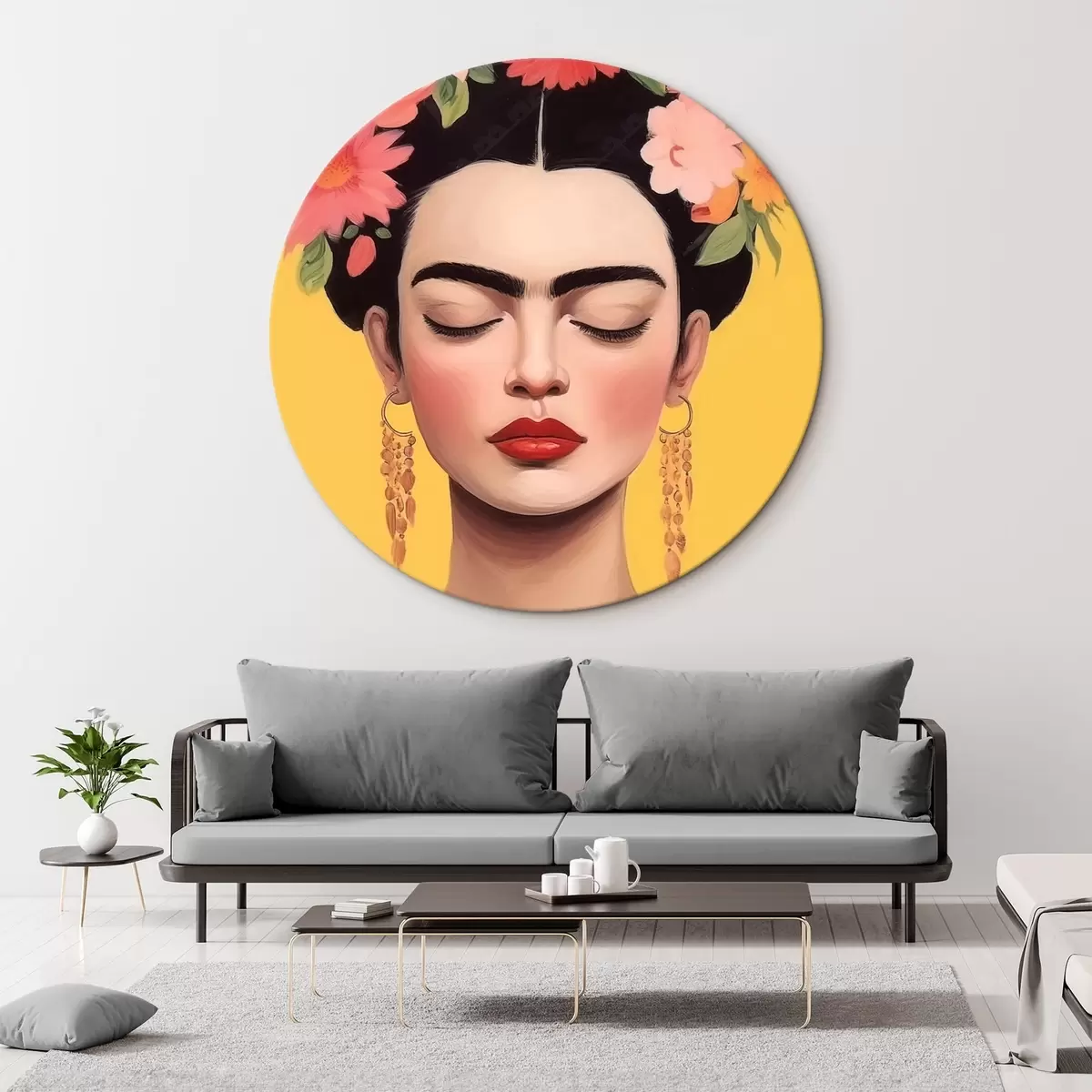 Ronde schilderijen Vrouwenportret met bloemen in het haar Nr r44680