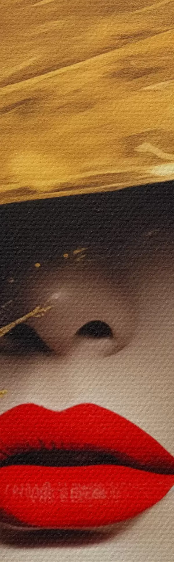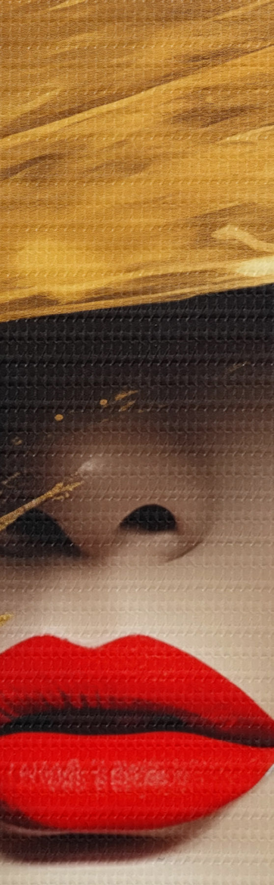 Ronde schilderijen Vrouwengezicht met rode lippenstift onder brede hoed Nr r44691