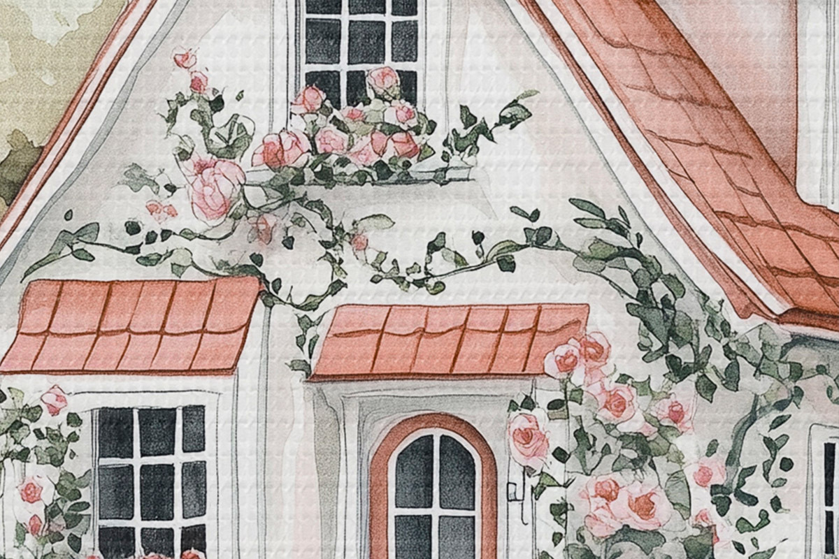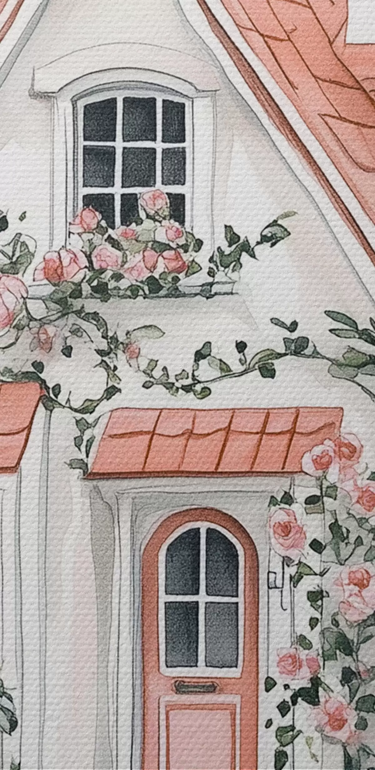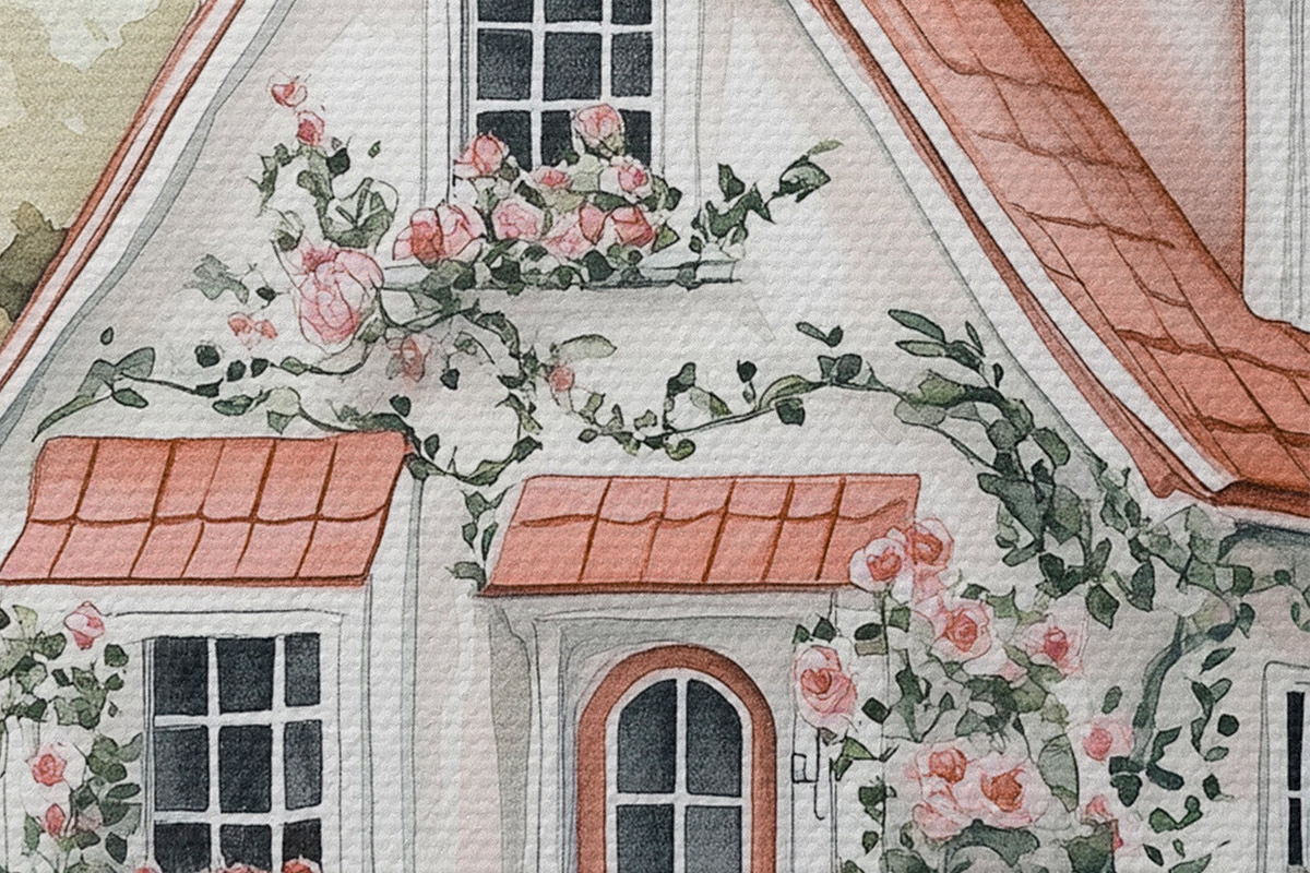 Ronde schilderijen Wit huis met rozentuin in het bos Nr r44716