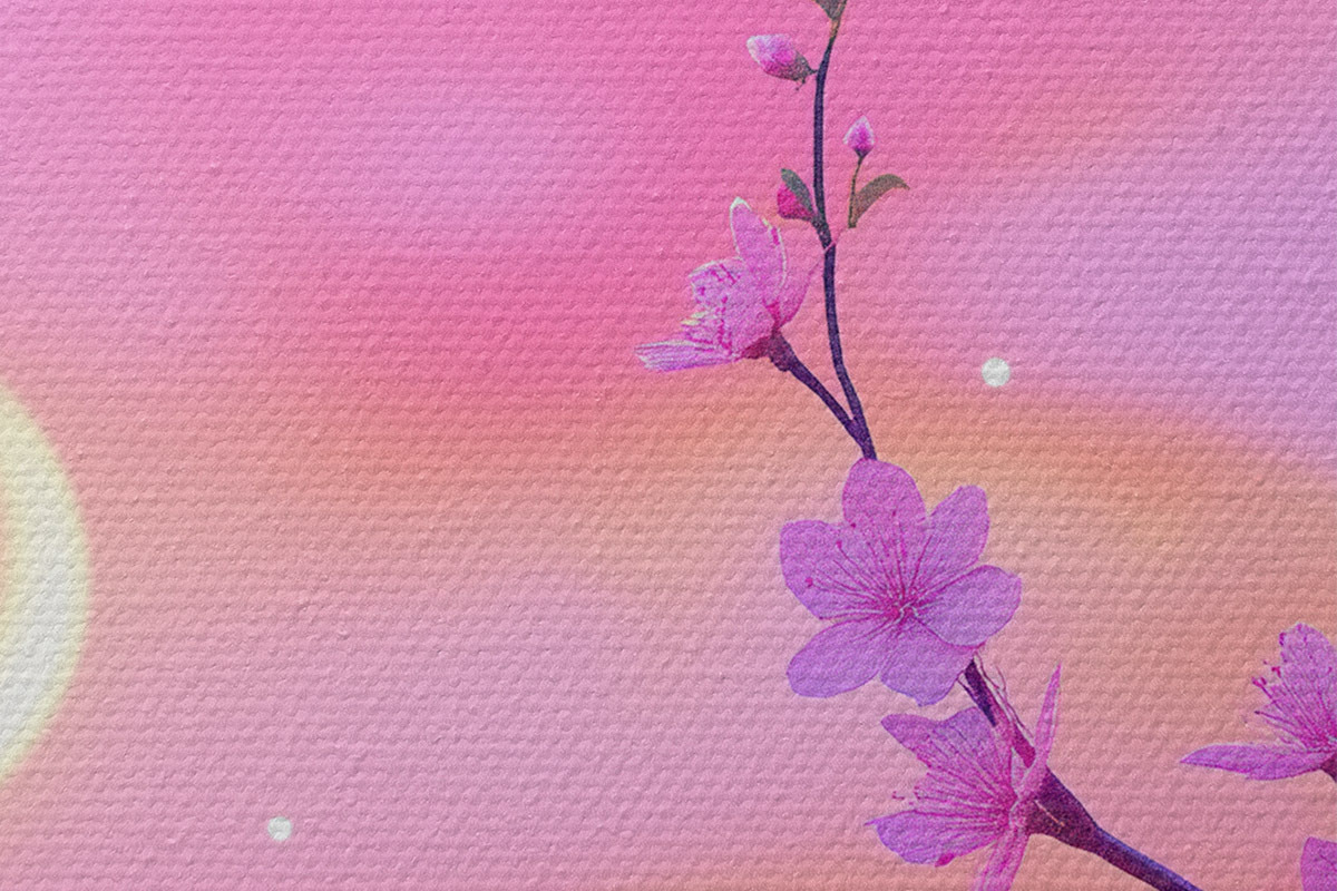 Ronde schilderijen Paarse lucht met maan en kersenbomen Nr r44717