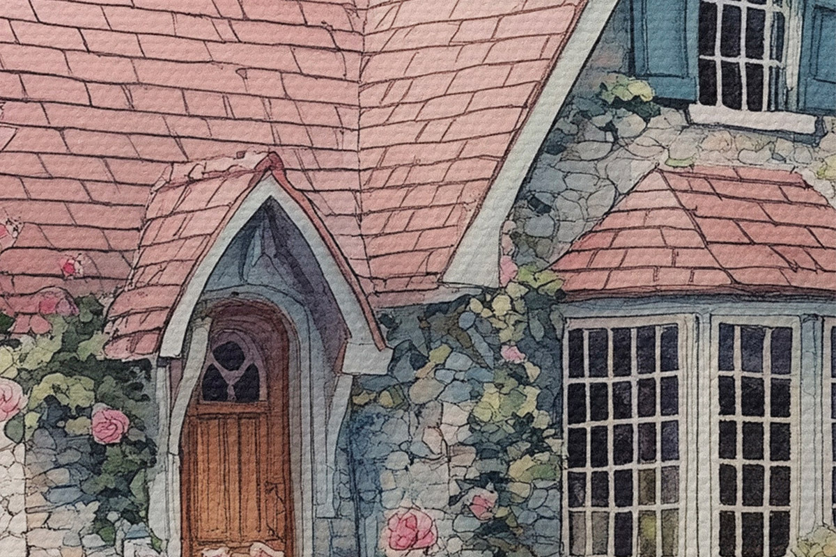 Ronde schilderijen Mooi huis tussen de berken, rozentuin Nr r44721