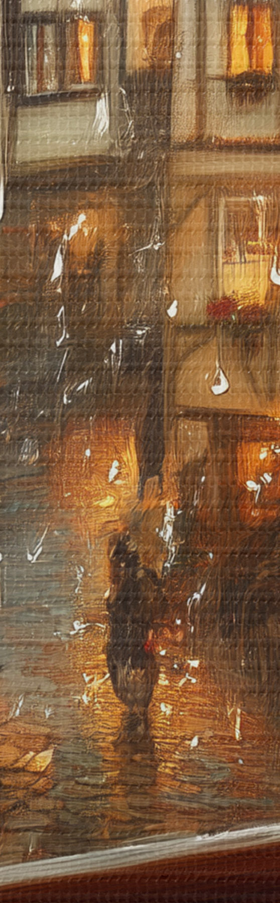 Ronde schilderijen Boek op de vensterbank, kaarsen, regenachtige dag, gezellig r44722
