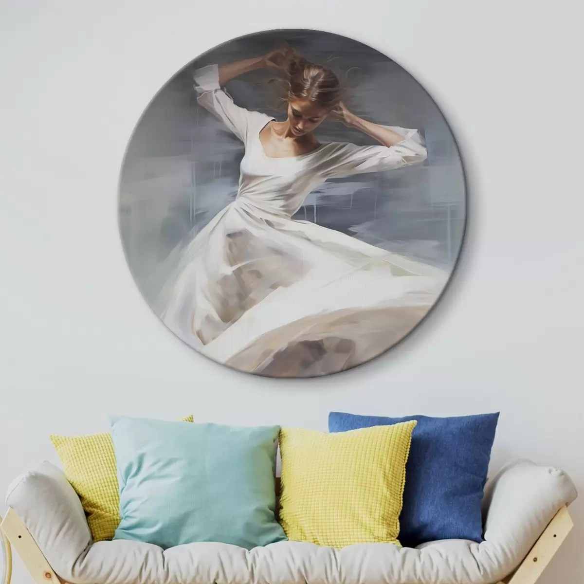 Ronde schilderijen Danseres in zachte tinten r44751