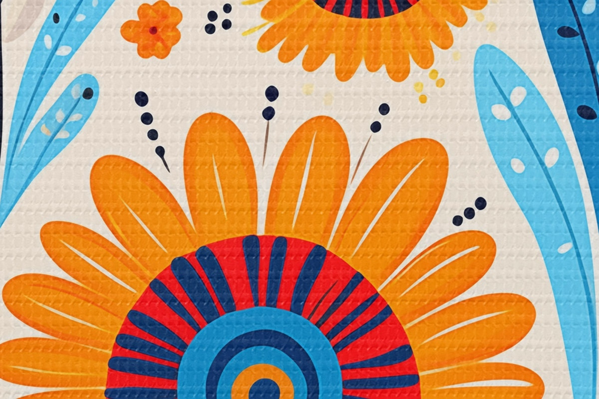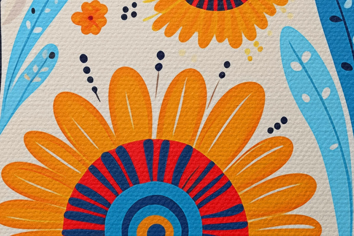 Ronde schilderijen Gestileerde bloemen in blauw en oranje palet Nr r44761