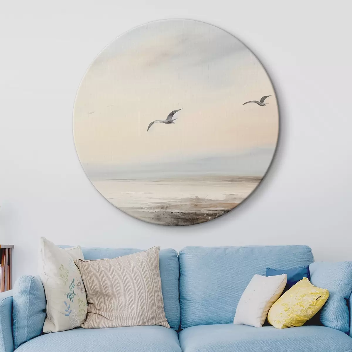 Ronde schilderijen Pastel landschap met vliegende meeuwen Nr r44763