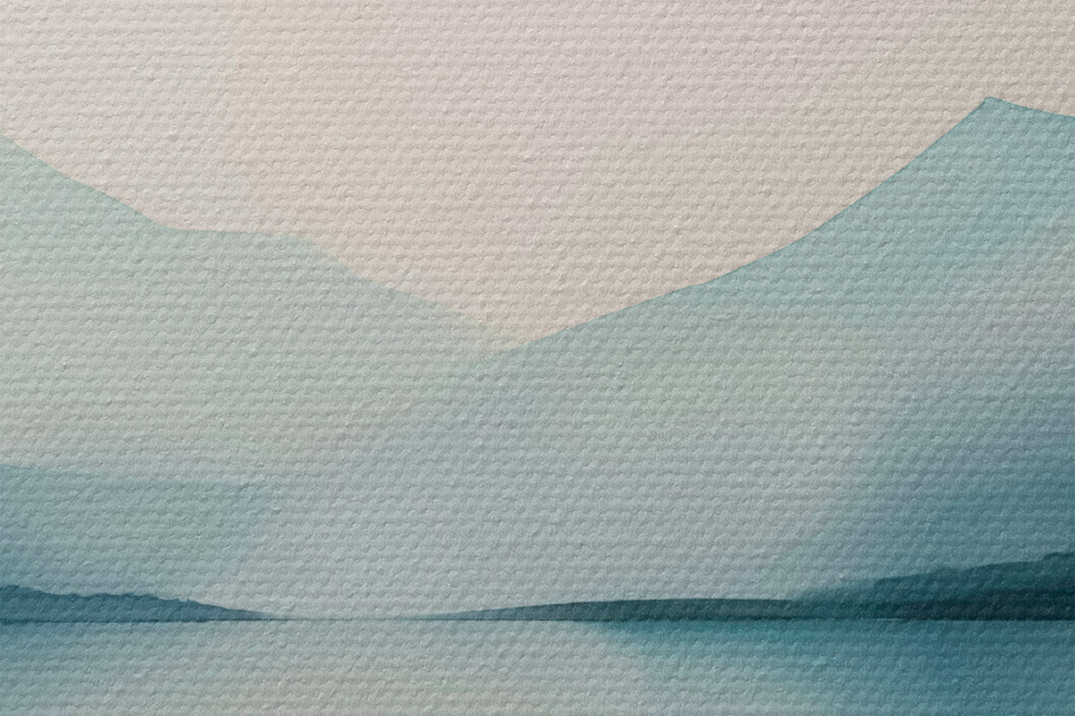 Ronde schilderijen Bergen achter het meer imitatie van aquarel Nr r44764