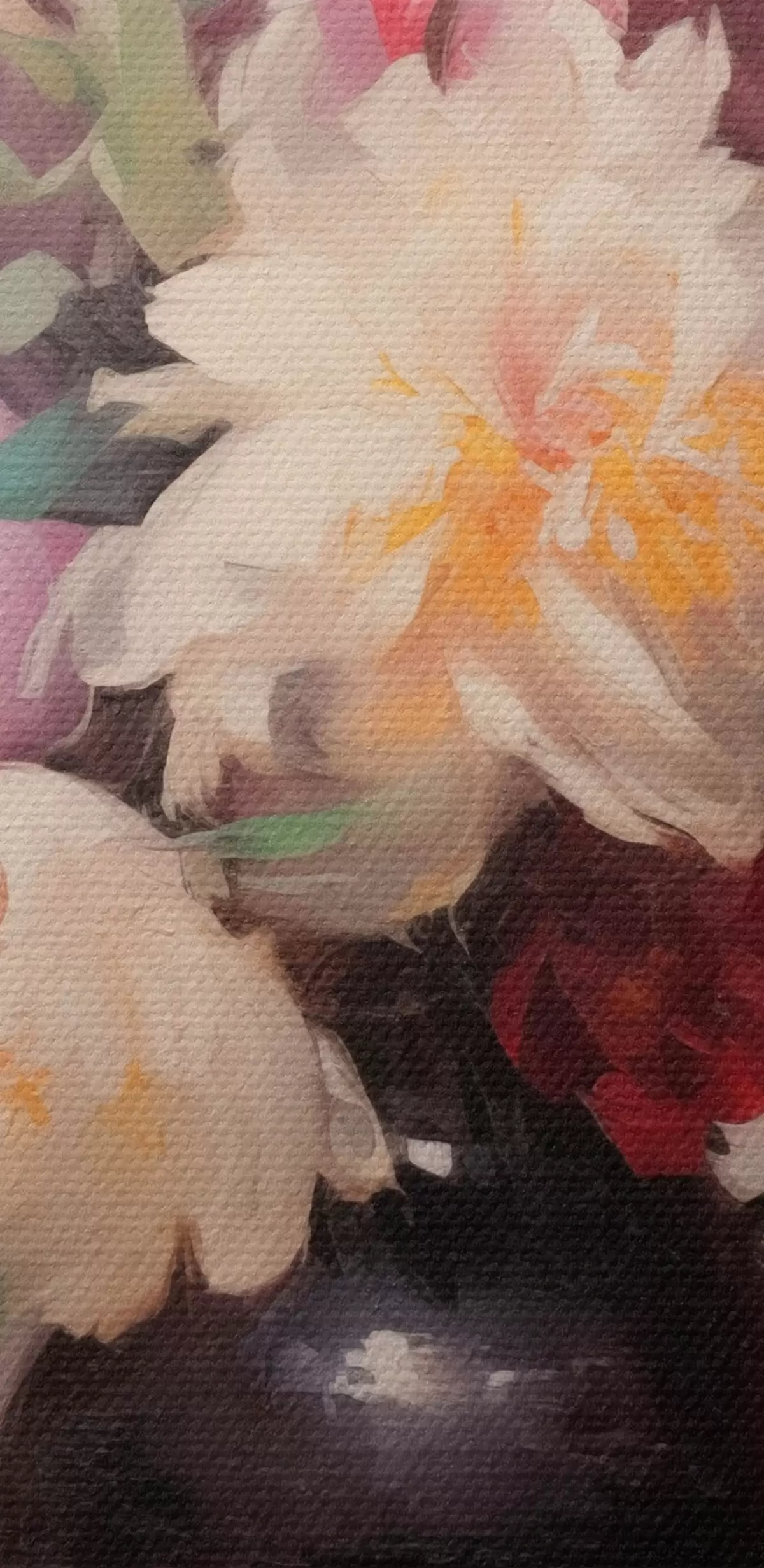 De fijne weving van draden op dit doek lijkt op het oppervlak van professionele schildersdoeken.
