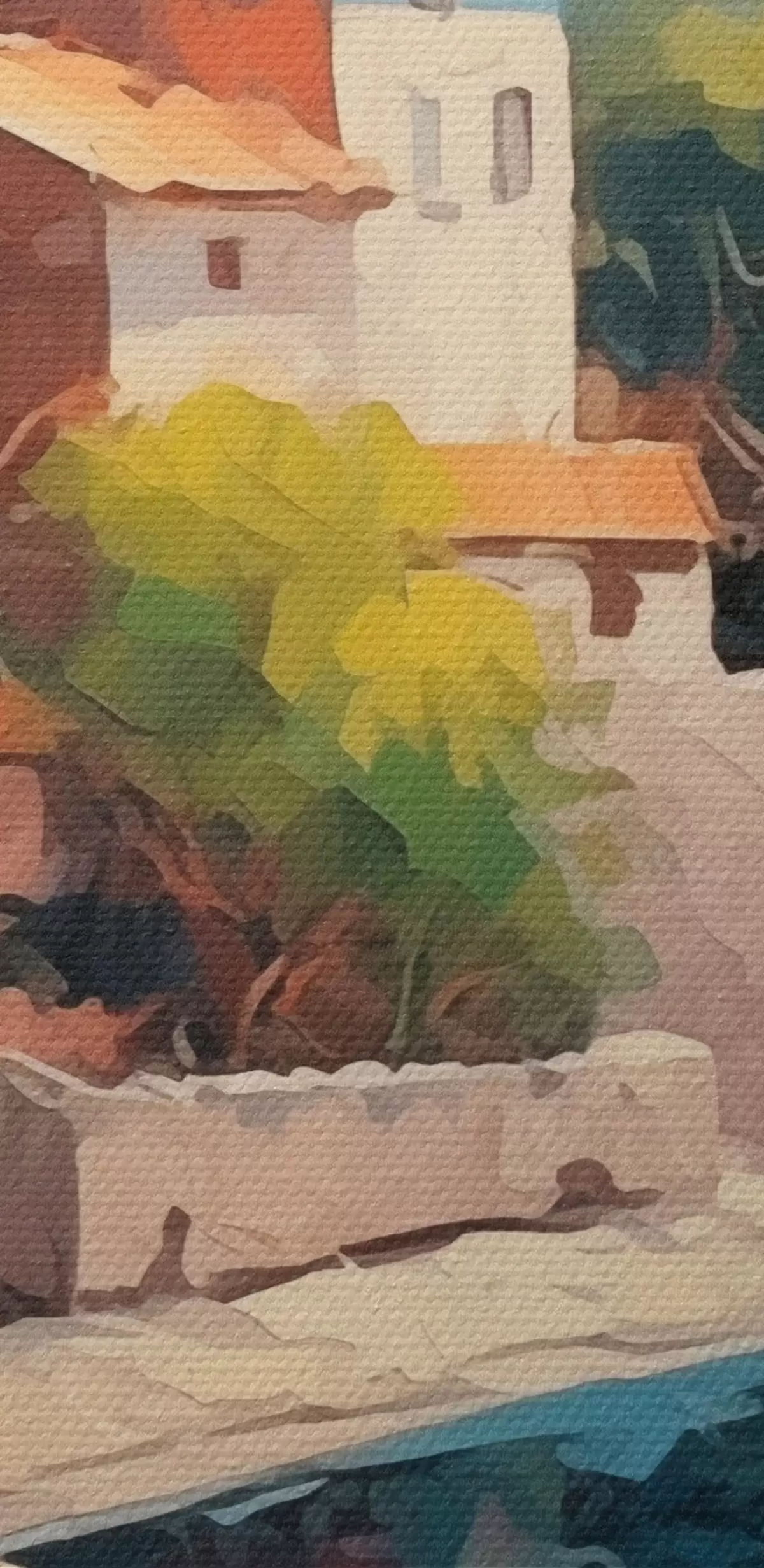 Het schilderij kan direct na ontvangst worden opgehangen. Het schilderij wordt opgespannen op een 2 cm breed houten spieraam.