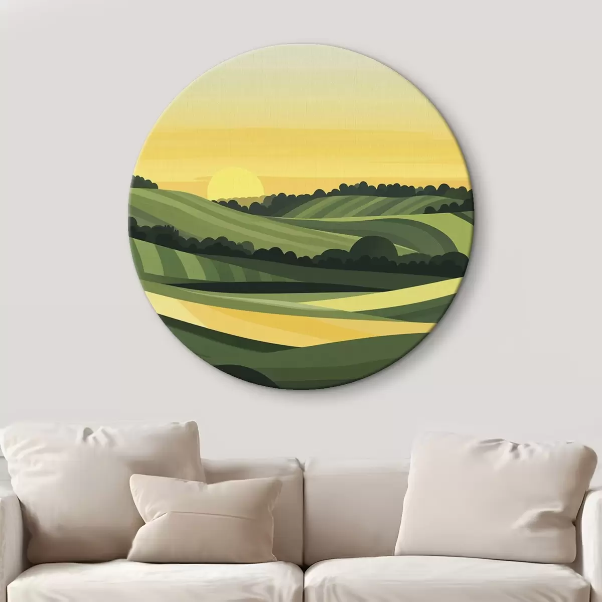 Ronde schilderijen Abstracte landschappen met heuvels en zonsondergang r44785