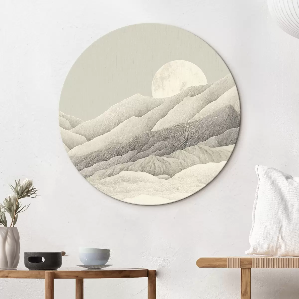 Ronde schilderijen Bergen met maan, gedetailleerde tekening Nr r44788
