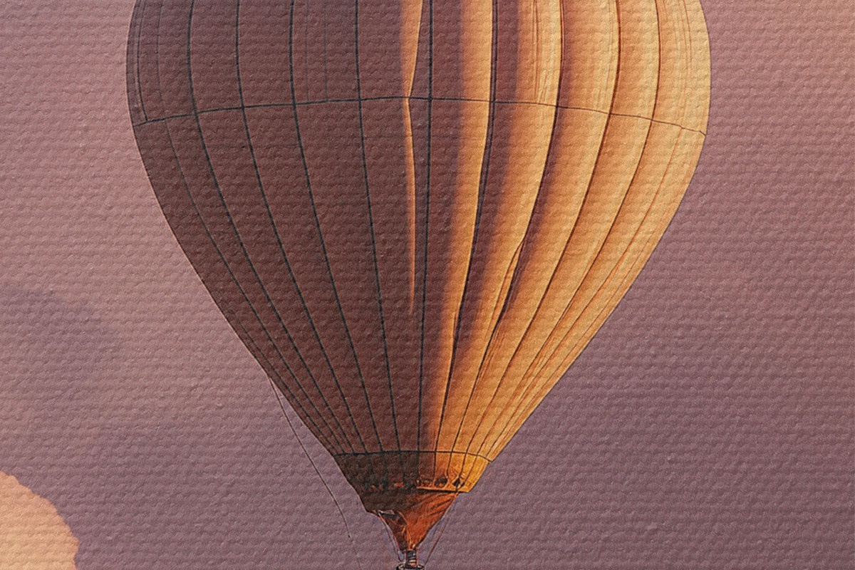 Ronde schilderijen Luchtballon in de zonsondergang met wolken r44790