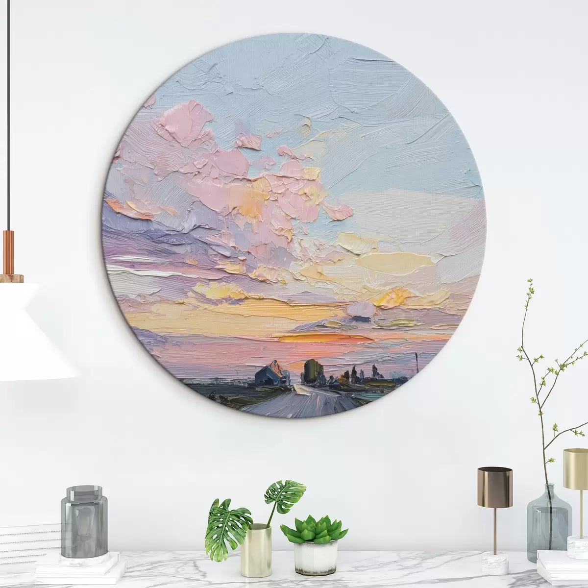 Ronde schilderijen Landschappen in olieverf tekening, zonsondergang Nr r44794