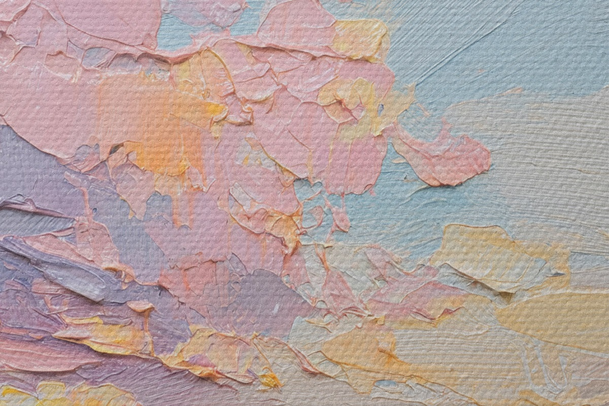Het schilderij kan direct na ontvangst worden opgehangen. Het schilderij wordt opgespannen op een 2 cm breed houten spieraam.