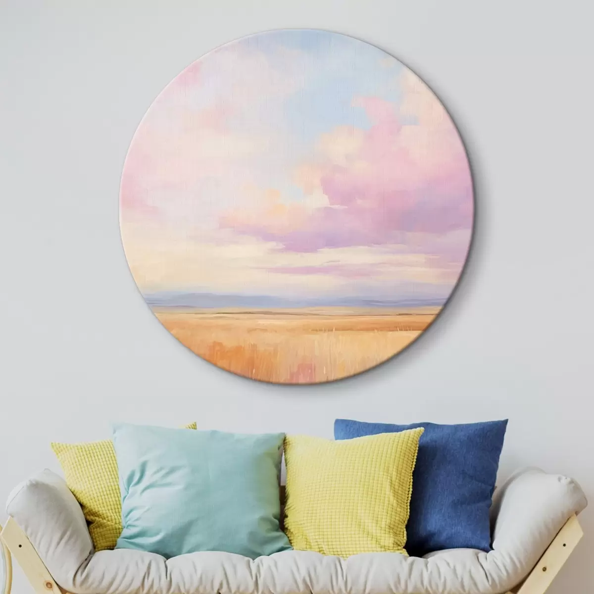 Ronde schilderijen Roze lucht boven een veld Nr r44810
