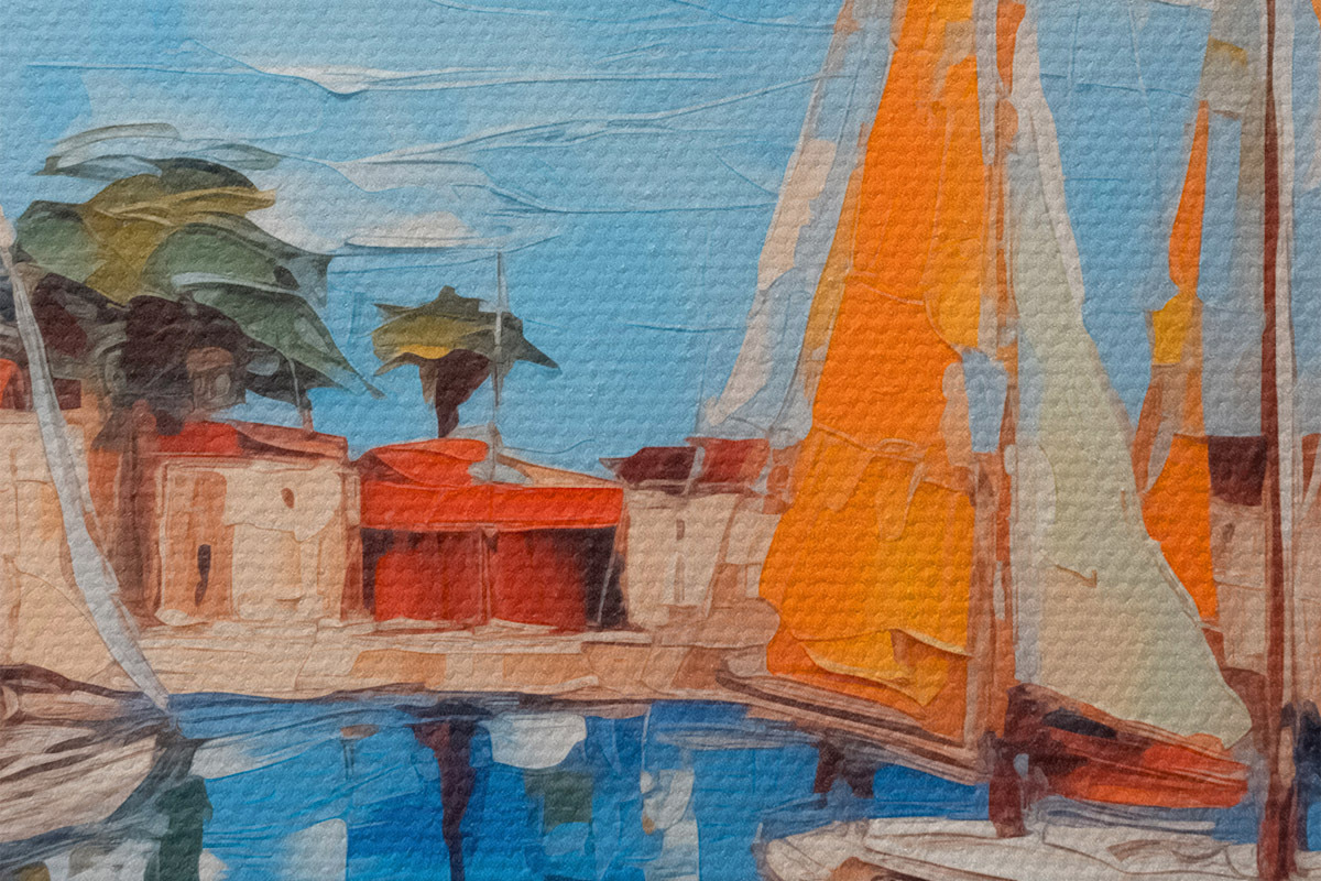 Het is een goedkopere versie van canvas. Het is duurzamer en vochtbestendiger, maar het oppervlak heeft niet zo'n uitgesproken textuur als Premium Canvas
