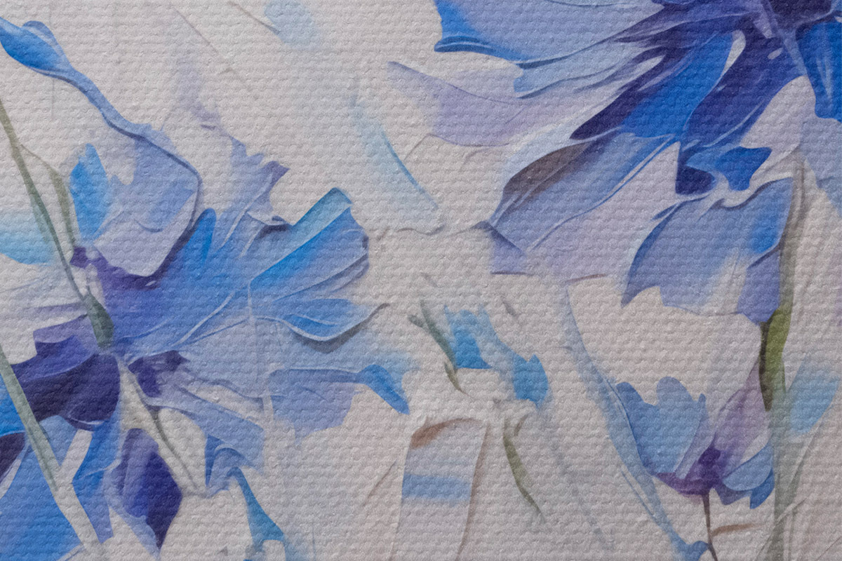 Er zijn drie soorten materiaal te bestellen: Economic Canvas - een dicht en duurzaam materiaal voor digitaal printen, identiek aan schildersdoek, waterdicht oppervlak, realistische weergave van details, materiaal met gemiddelde korrel. Premium Canvas - de textuur lijkt op die van schildersdoek (verweven kleine draden). Zachte, gedetailleerde reproductie van de afbeelding op een mat oppervlak. Eco-Premium - hoogwaardige 100% katoenen stof. Dankzij de natuurlijke katoenvezels is het materiaal duurzaam en slijtvast. Uitstekende kleurweergave en detail.