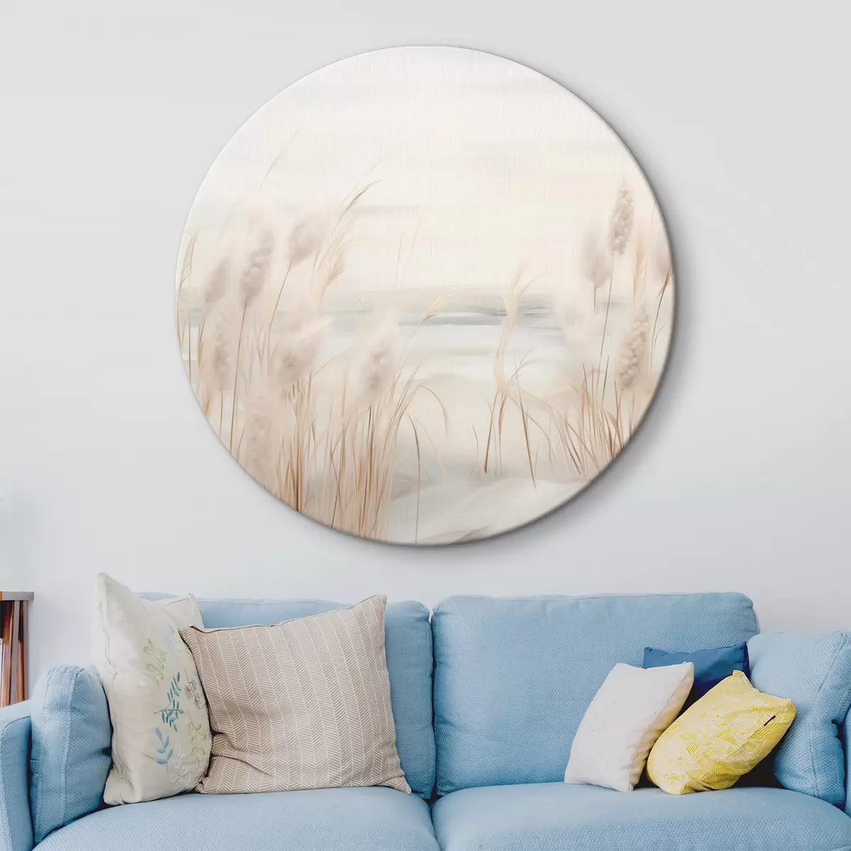 Ronde schilderijen Beige riet op de voorgrond, met zaadhoofden, zacht en delicaat, een onscherpe achtergrond en een lichte lucht Nr r44851