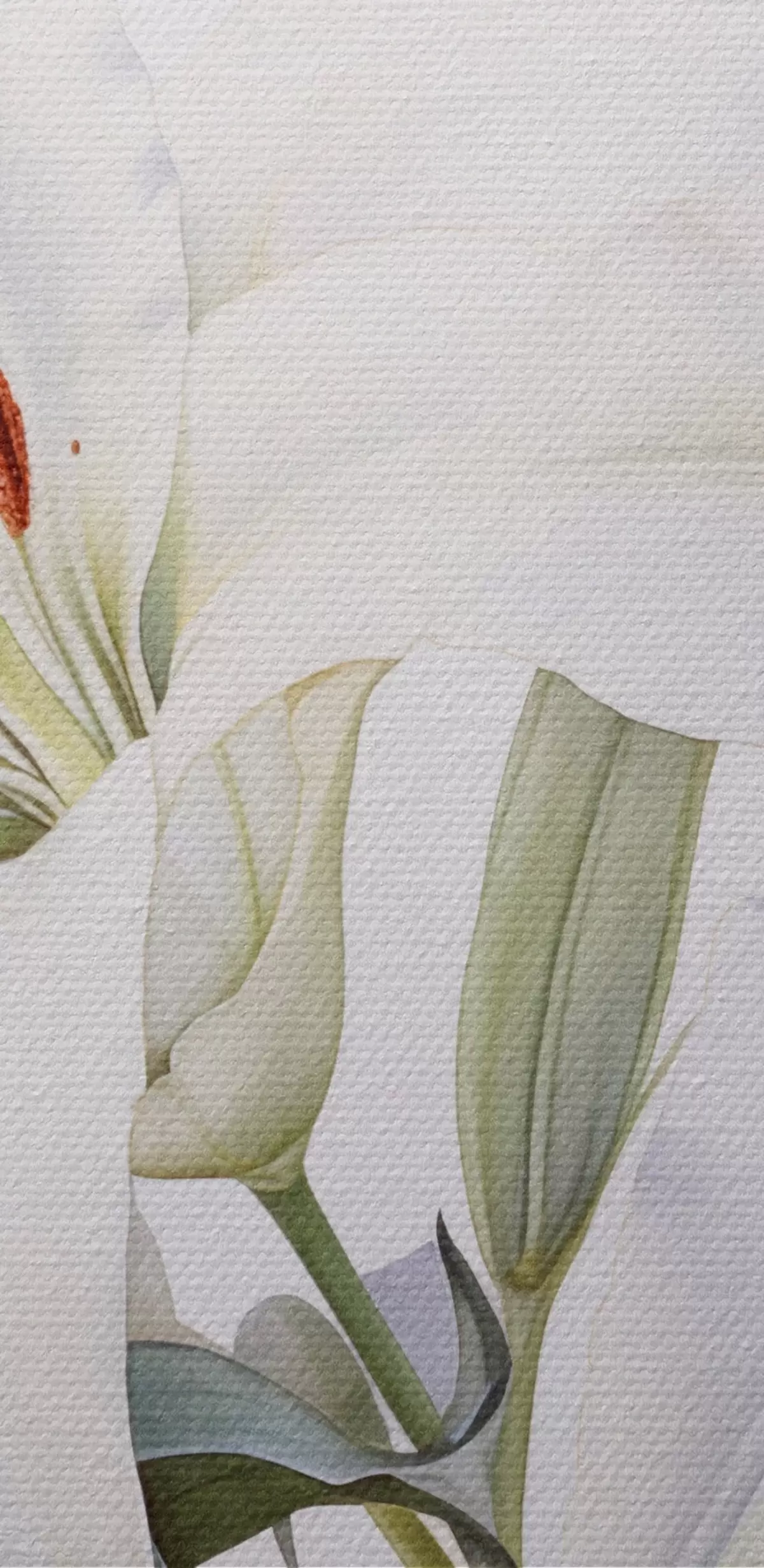 Er zijn drie soorten materiaal te bestellen: Economic Canvas - een dicht en duurzaam materiaal voor digitaal printen, identiek aan schildersdoek, waterdicht oppervlak, realistische weergave van details, materiaal met gemiddelde korrel. Premium Canvas - de textuur lijkt op die van schildersdoek (verweven kleine draden). Zachte, gedetailleerde reproductie van de afbeelding op een mat oppervlak. Eco-Premium - hoogwaardige 100% katoenen stof. Dankzij de natuurlijke katoenvezels is het materiaal duurzaam en slijtvast. Uitstekende kleurweergave en detail.