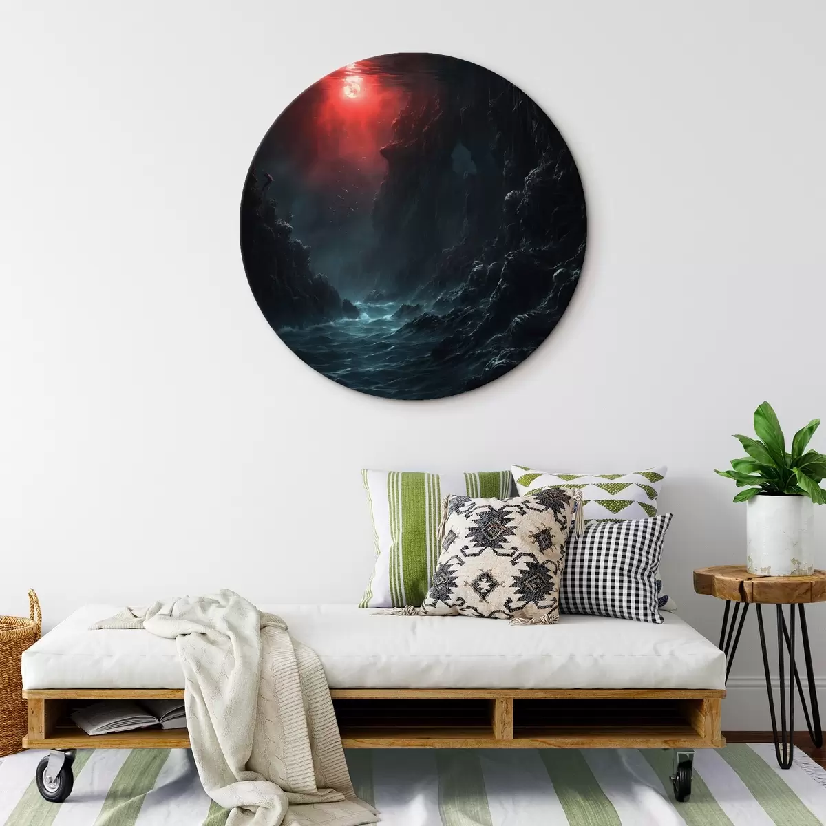 Ronde schilderijen Donkere zeekloof met rood licht van boven Nr r44870