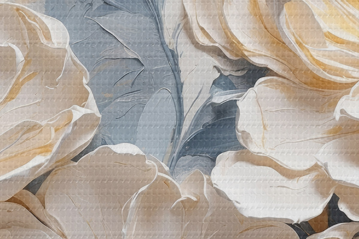 Ronde schilderijen Volumetrische crèmekleurige pioenrozen op een lichtblauwe achtergrond Nr r44880