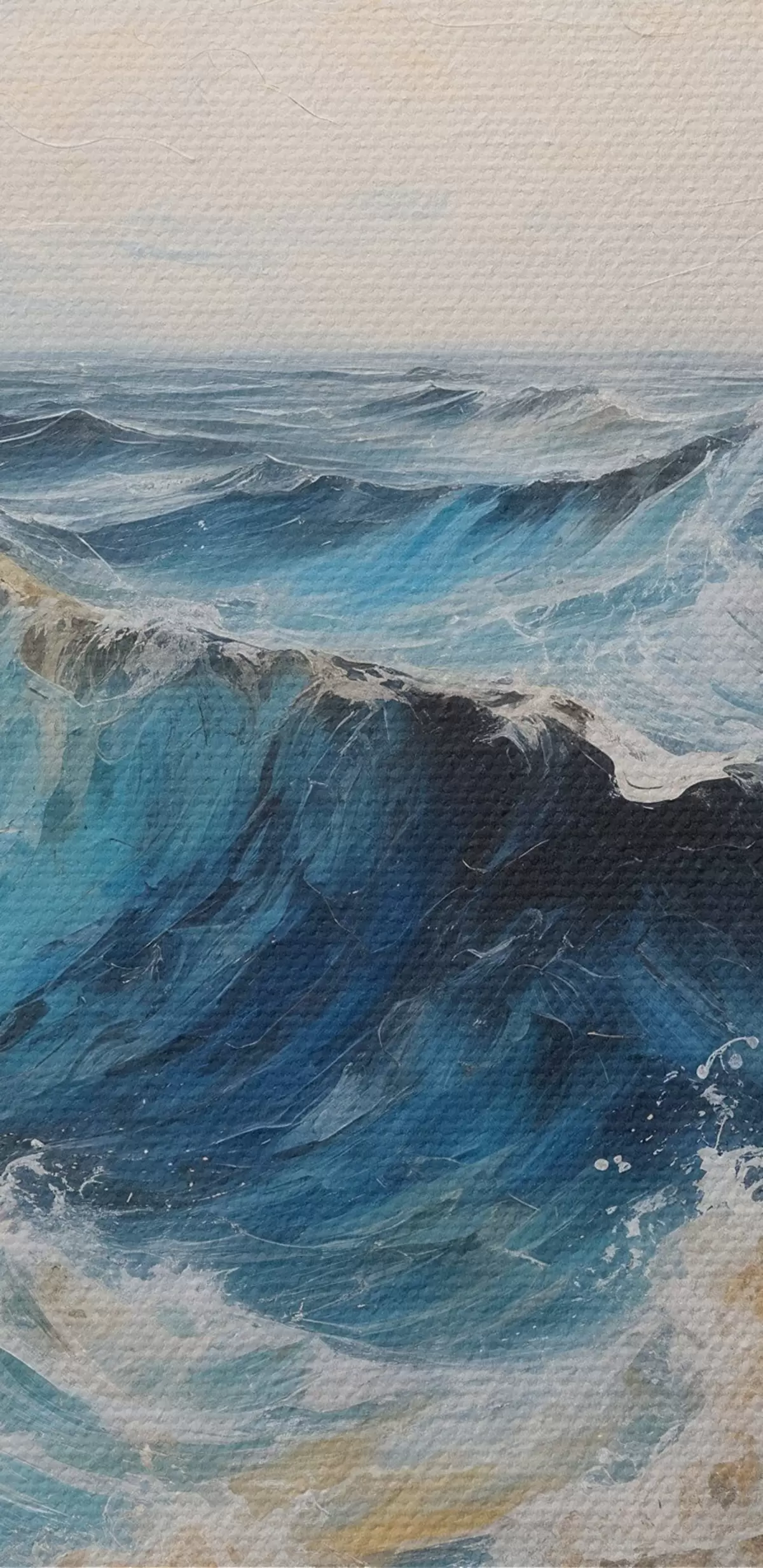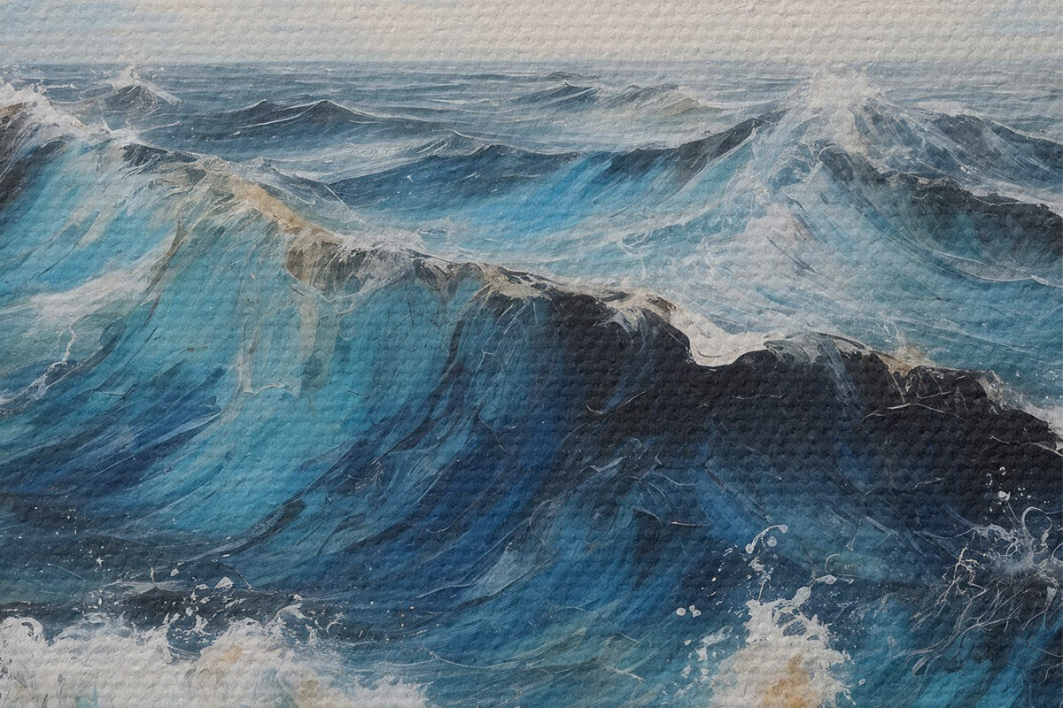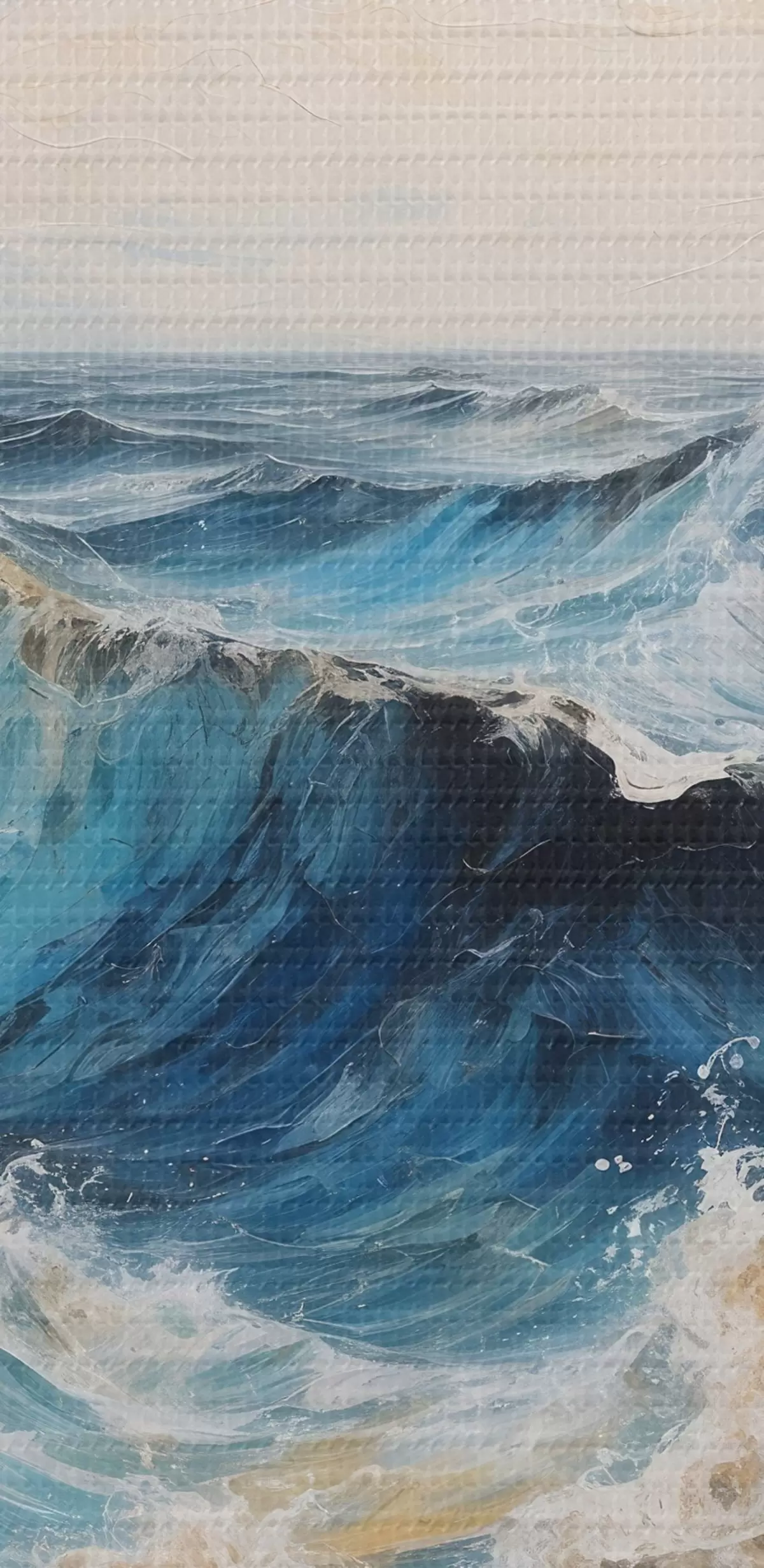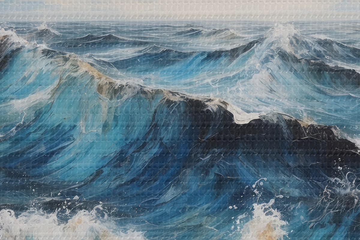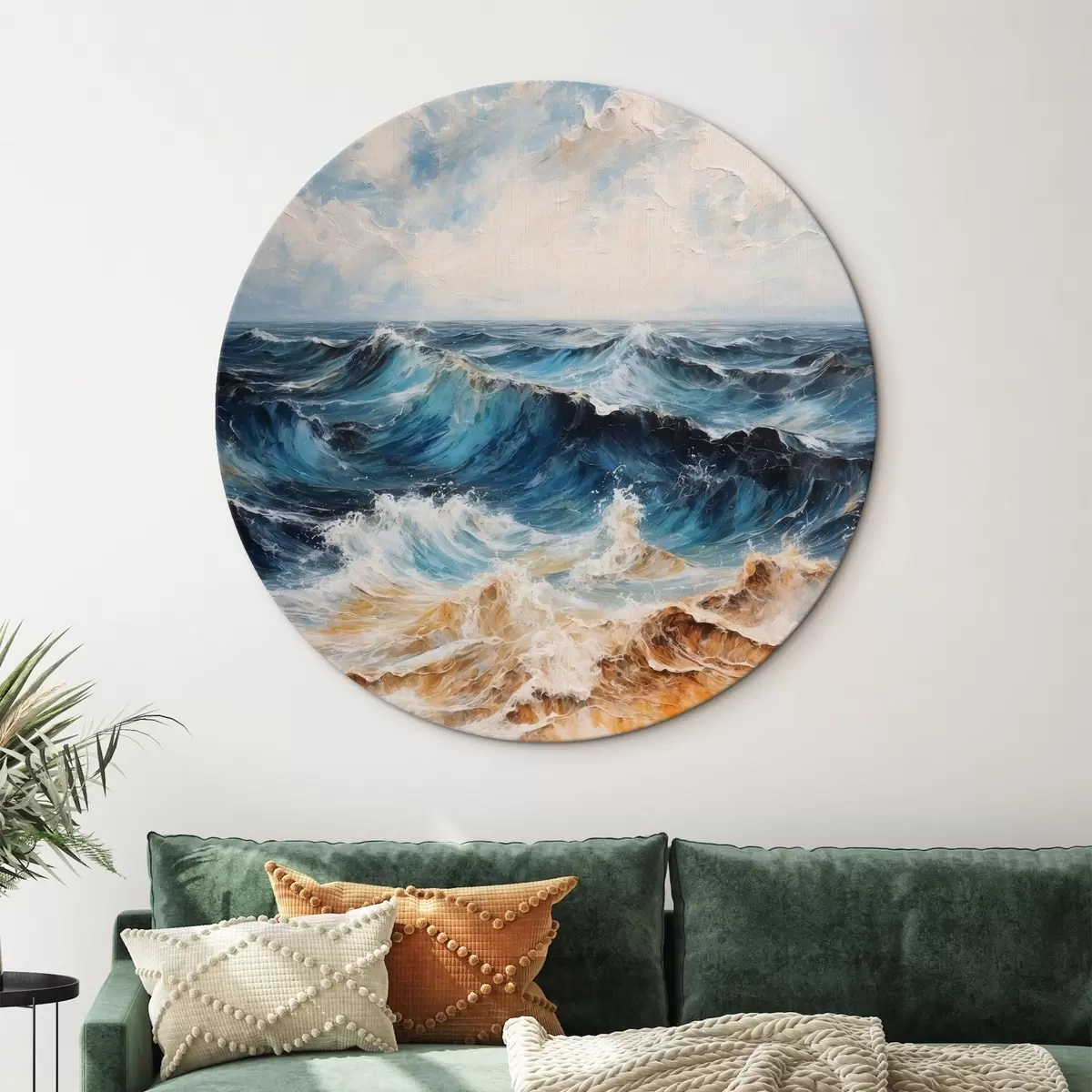 Ronde schilderijen Ruwe zee met golven onder een heldere hemel Nr r44881