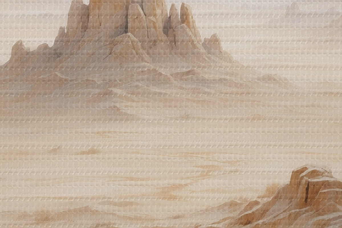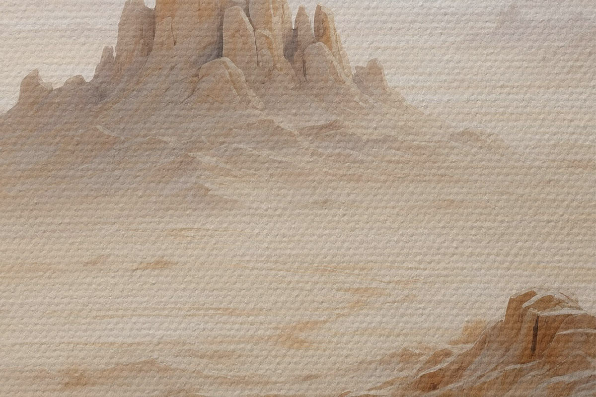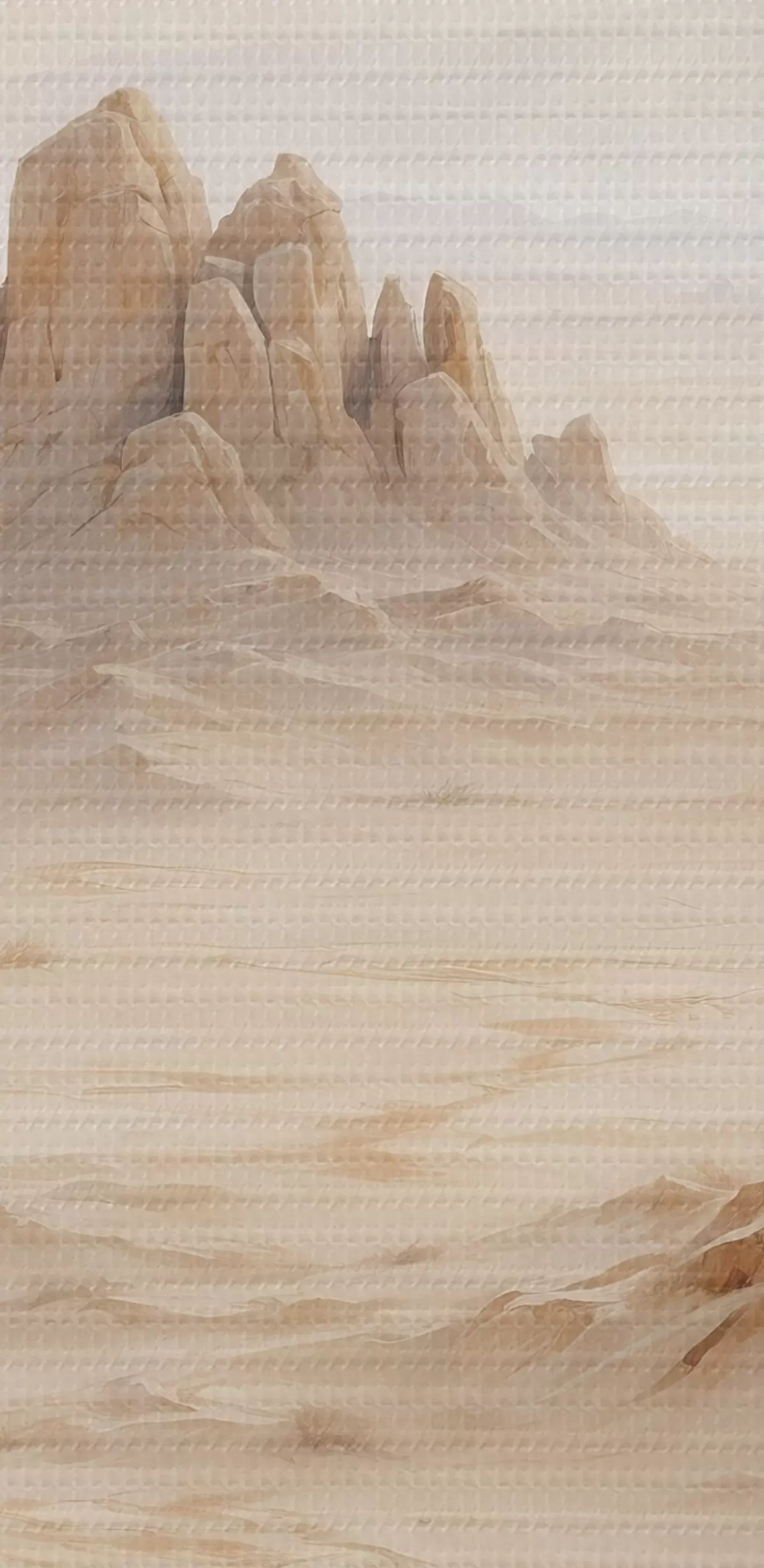 Ronde schilderijen Minimalistisch woestijnlandschap met bergrotsen Nr r44883
