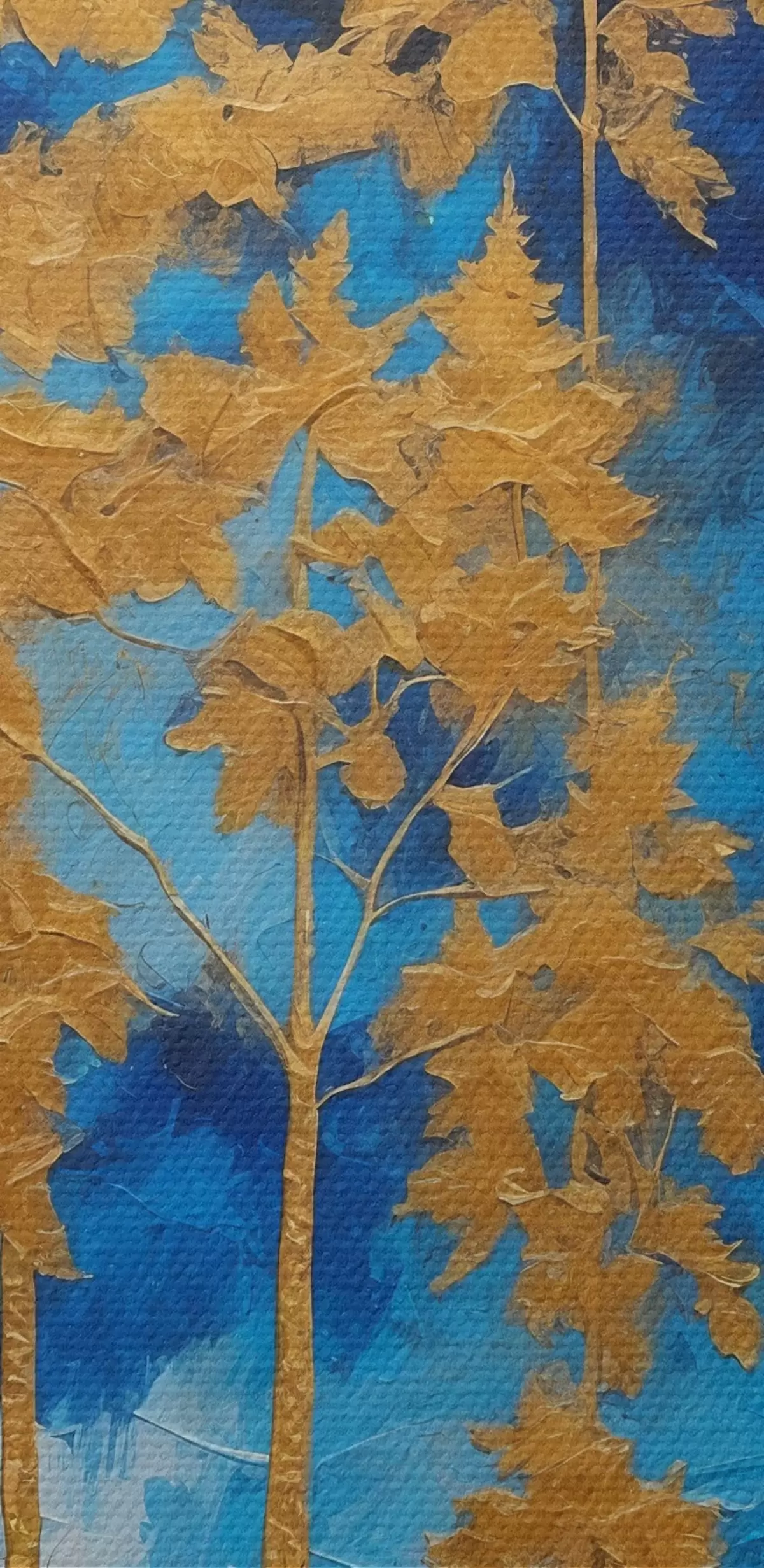 Ronde schilderijen Bomen op de achtergrond van nachtelijke hemel in blauwe tinten Nr r44888
