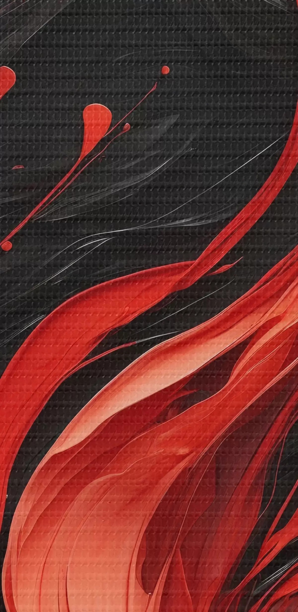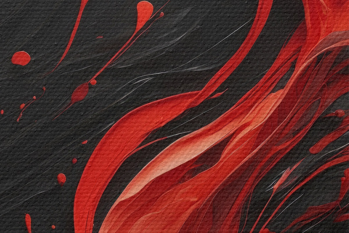 Ronde schilderijen Rode verfstroom op zwarte abstracte achtergrond r44889
