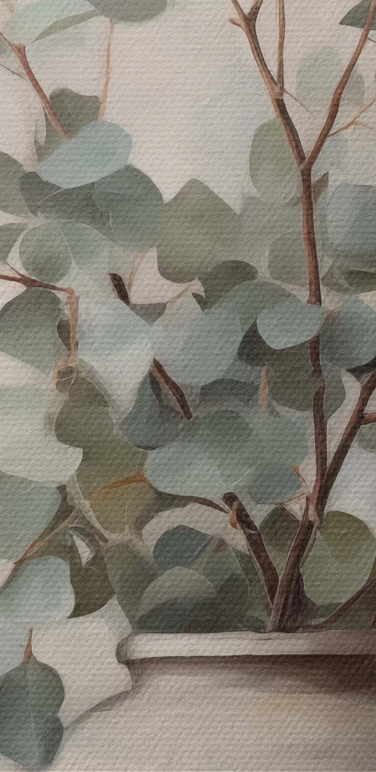 Ronde schilderijen Eucalyptustakken in een vaas van klei Nr r44906