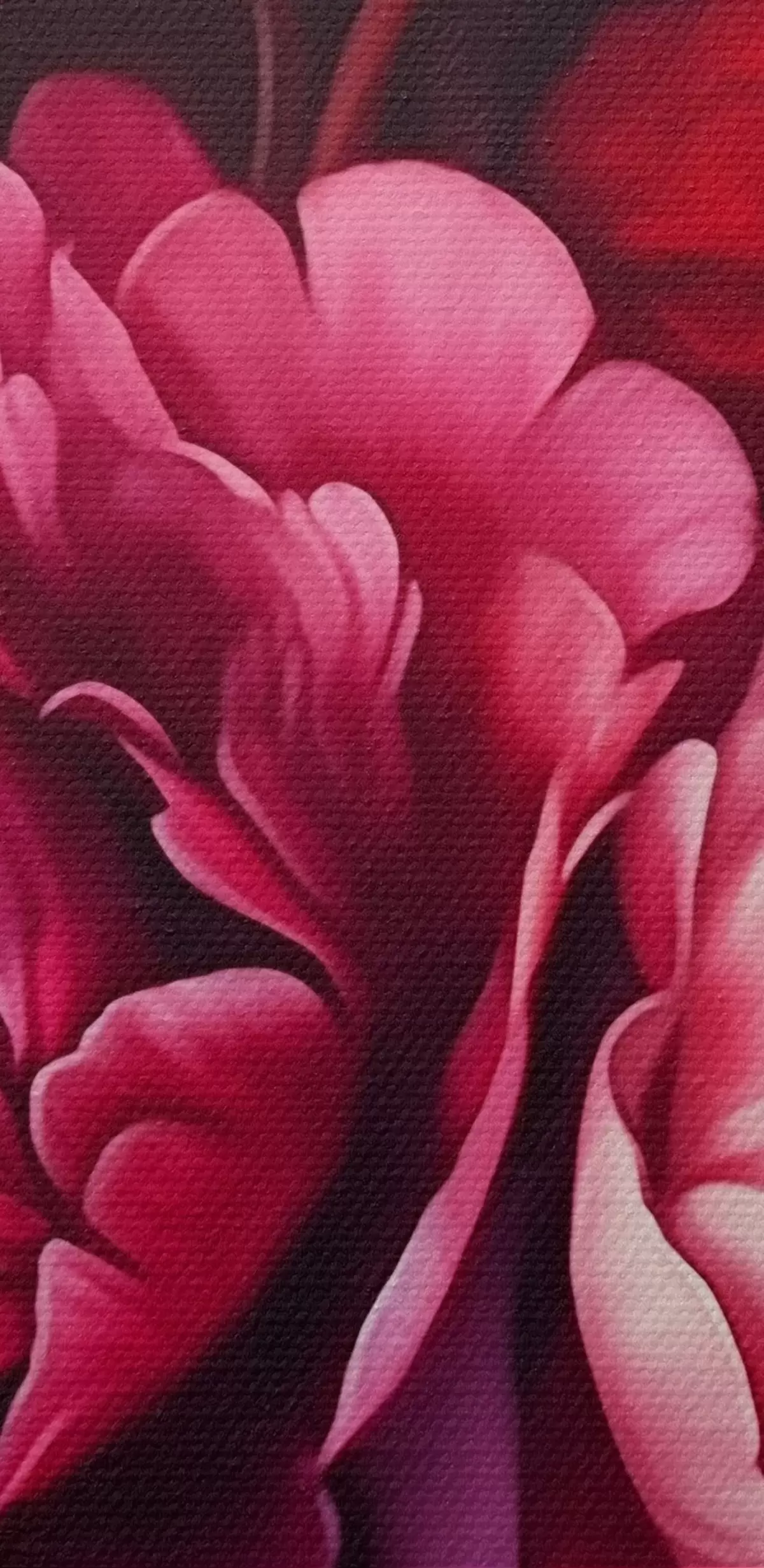 De fijne weving van draden op dit doek lijkt op het oppervlak van professionele schildersdoeken.