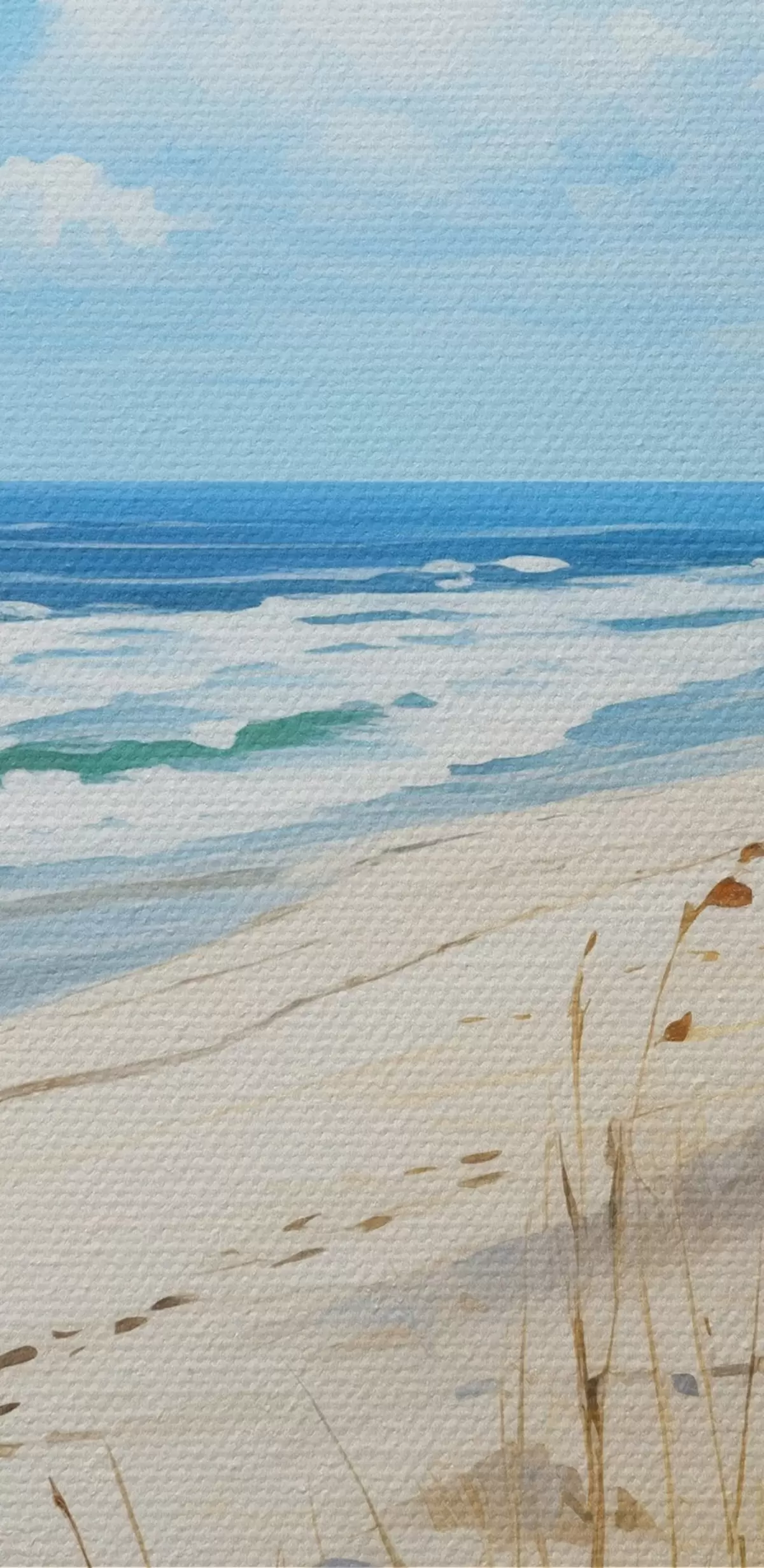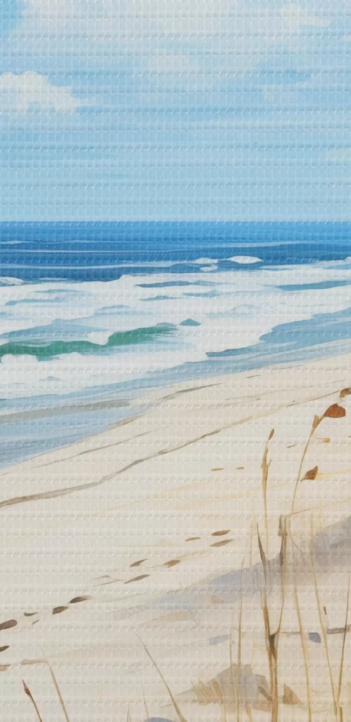 Ronde schilderijen Gras aan de kust onder een blauwe hemel Nr r44917