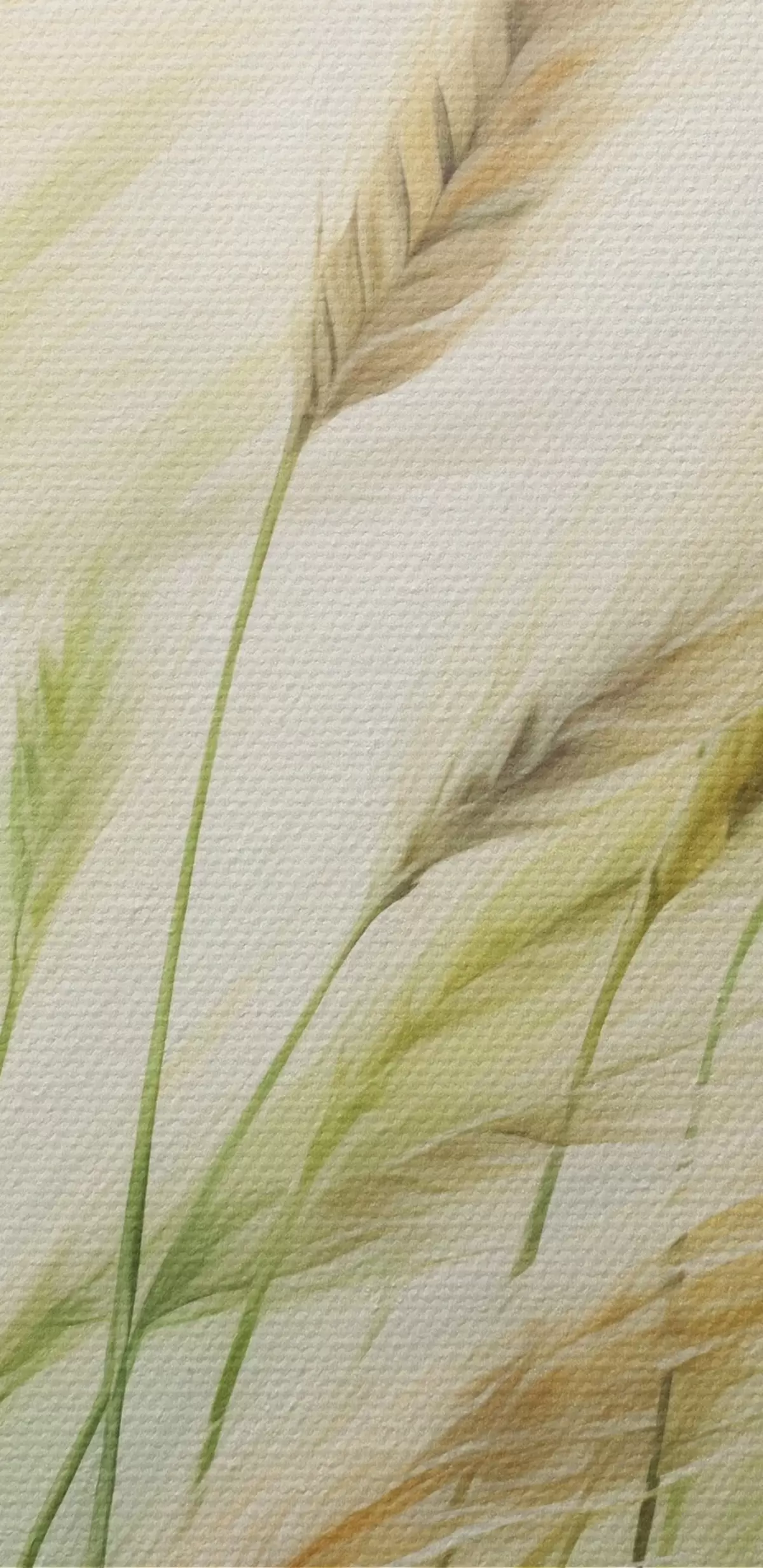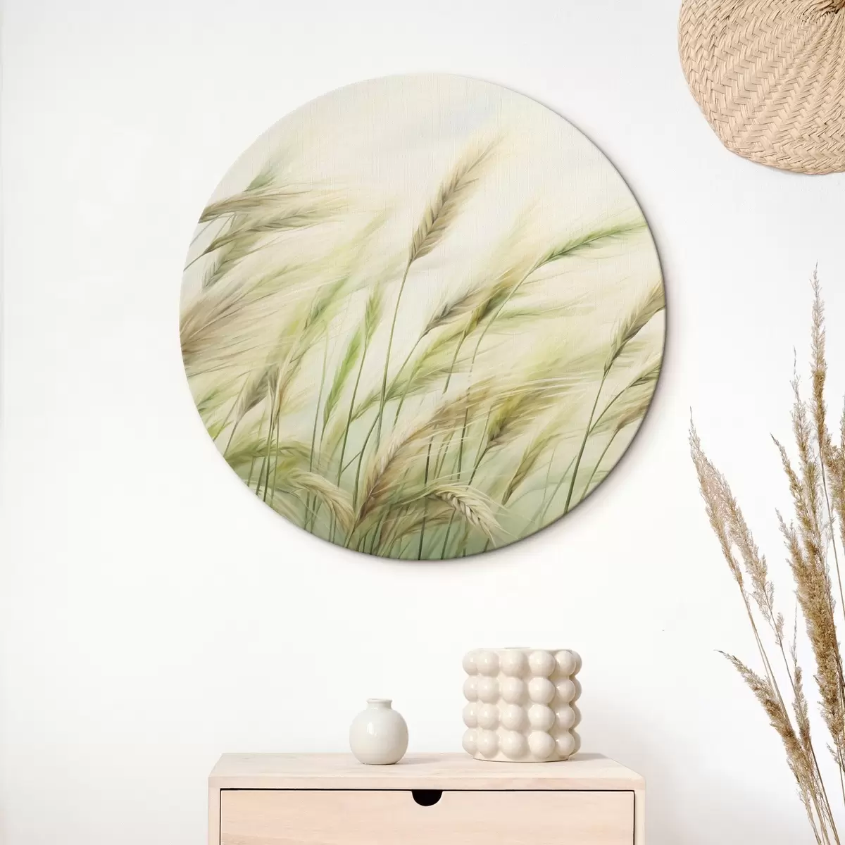 Ronde schilderijen Korenveld met gele en groene korenaren, zachte penseelstreken en een licht kleurenpalet, natuurlijke sfeer Nr r44923