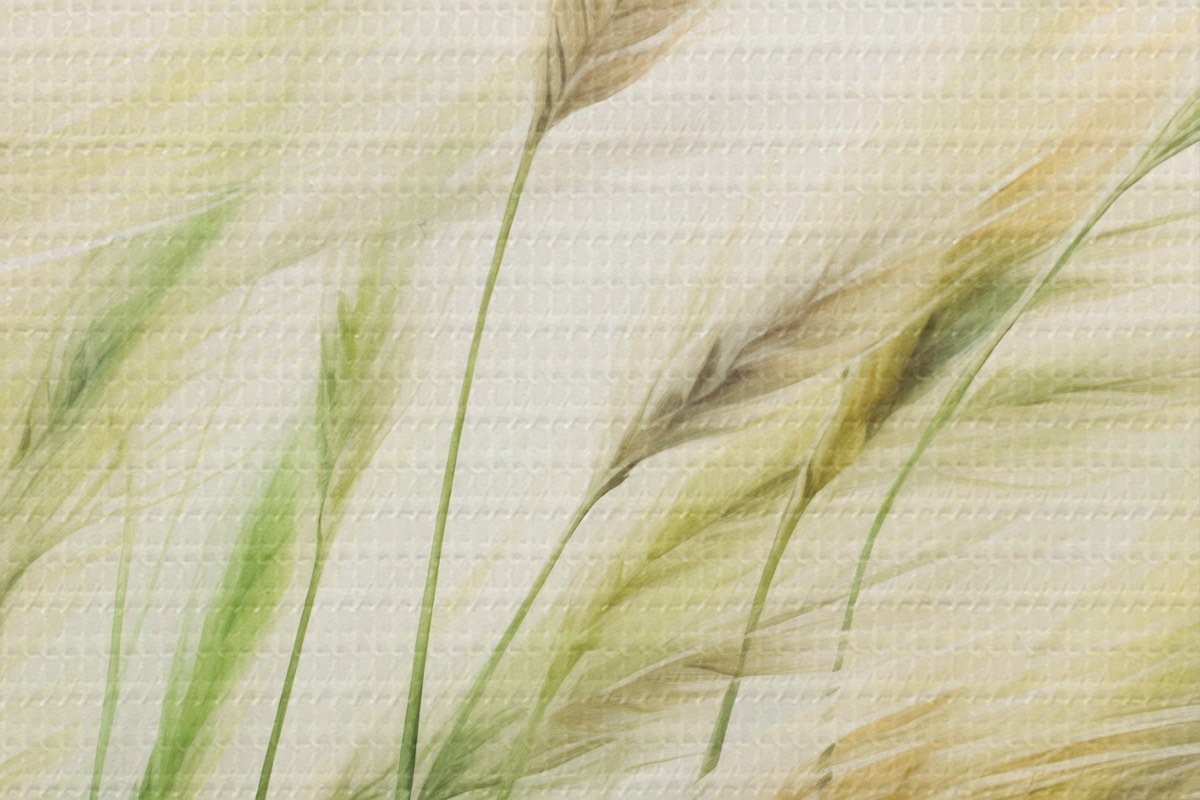 Ronde schilderijen Korenveld met gele en groene korenaren, zachte penseelstreken en een licht kleurenpalet, natuurlijke sfeer r44923