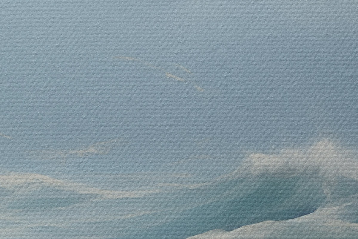 Het schilderij kan voorzichtig worden schoongeveegd met een droge zachte doek of spons; het wordt niet aanbevolen om natte producten te gebruiken. Het gebruik van een vochtige spons is alleen toegestaan als het schilderij gevernist is.