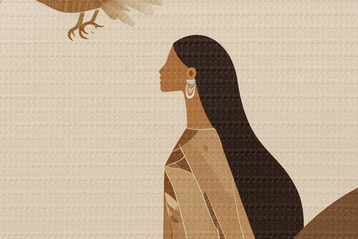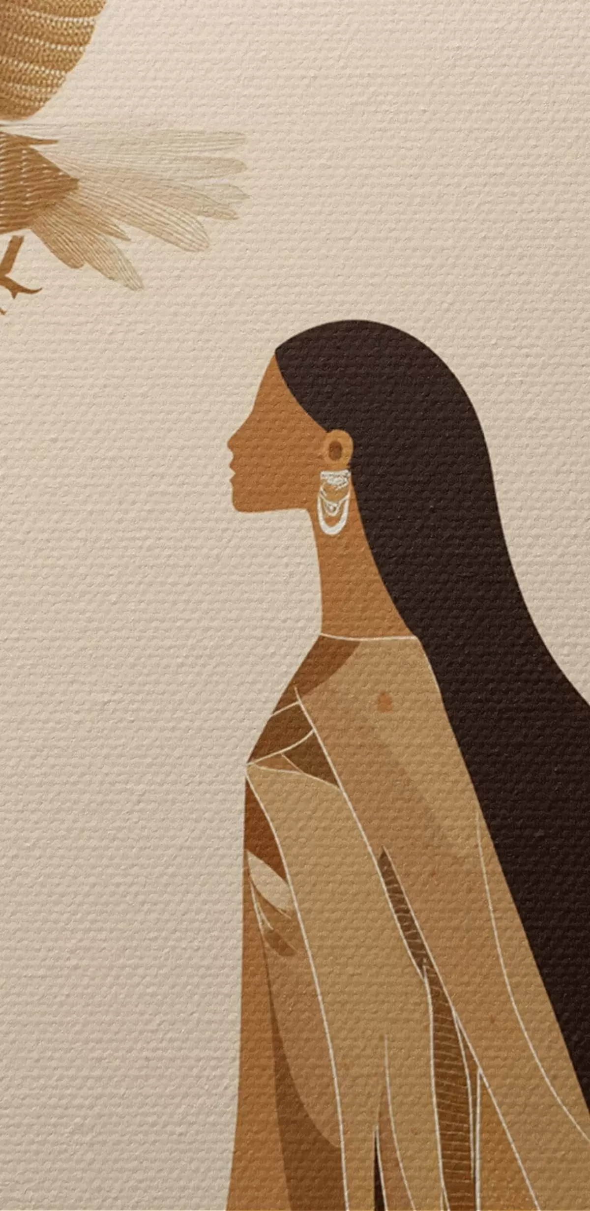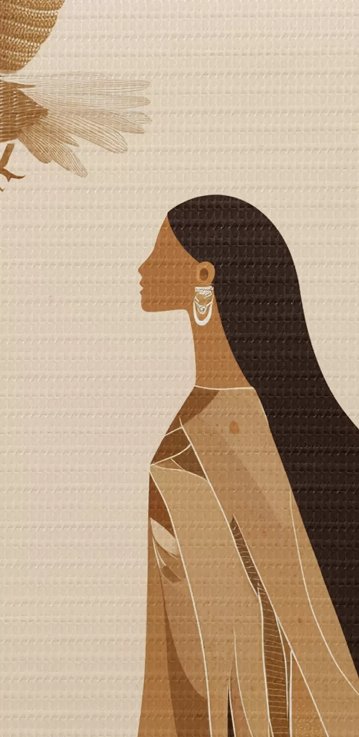 Ronde schilderijen Abstractie met vrouw en adelaar in de lucht, beige kleuren Nr r44978