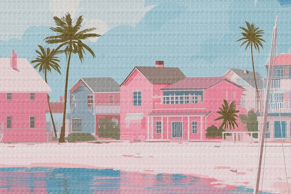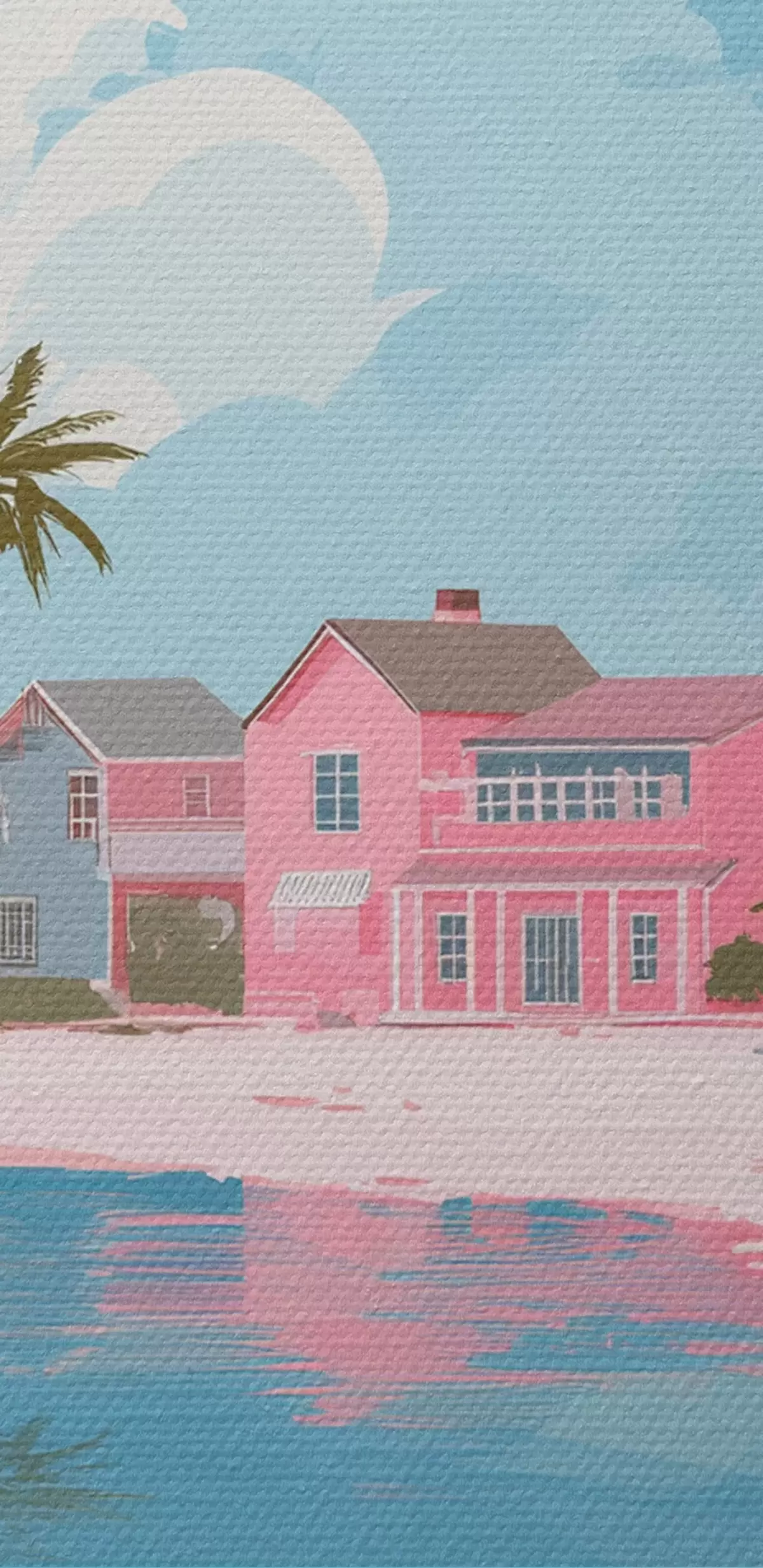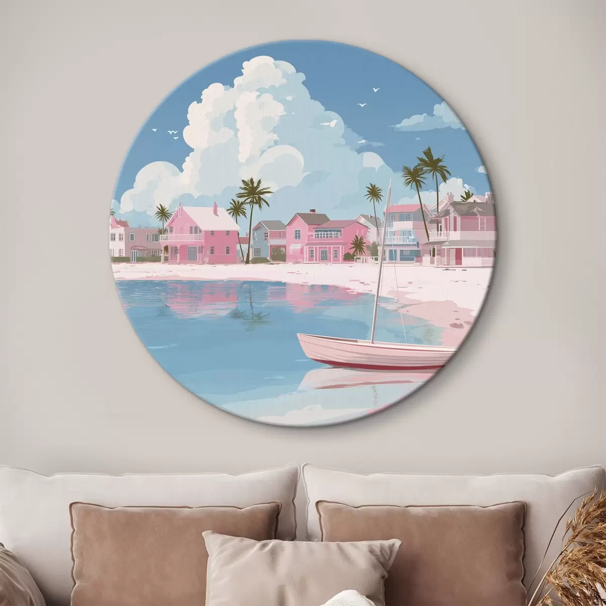 Ronde schilderijen Kleurrijk roze zomerstrand Nr r44985