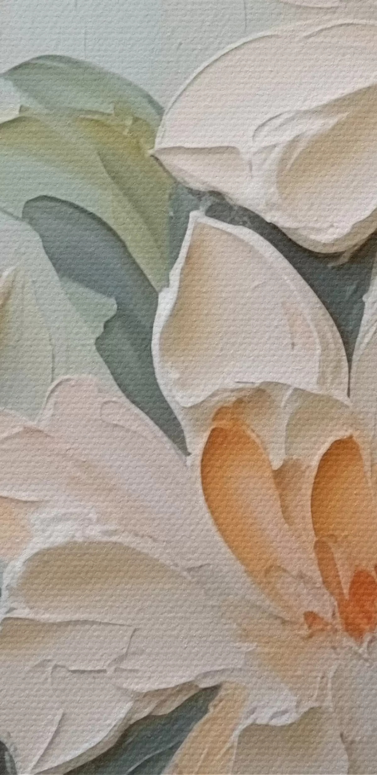 Het schilderij kan direct na ontvangst worden opgehangen. Het schilderij wordt opgespannen op een 2 cm breed houten spieraam.