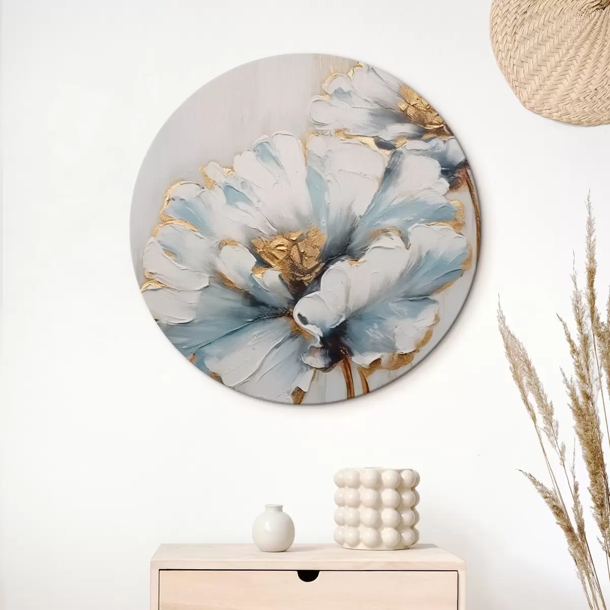 Ronde schilderijen Blauwe en witte bloemen Nr r44989
