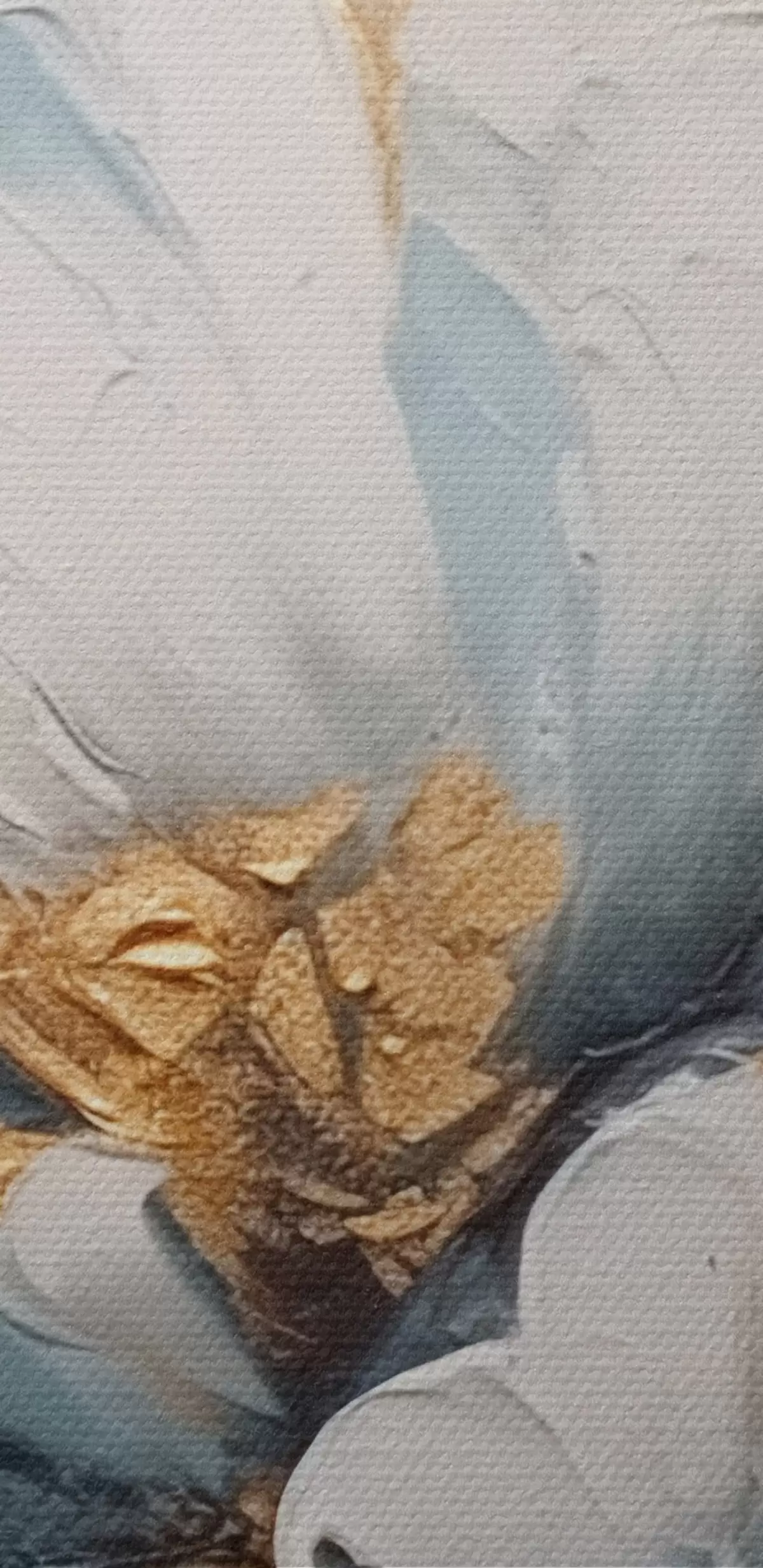 Het schilderij kan direct na ontvangst worden opgehangen. Het schilderij wordt opgespannen op een 2 cm breed houten spieraam.