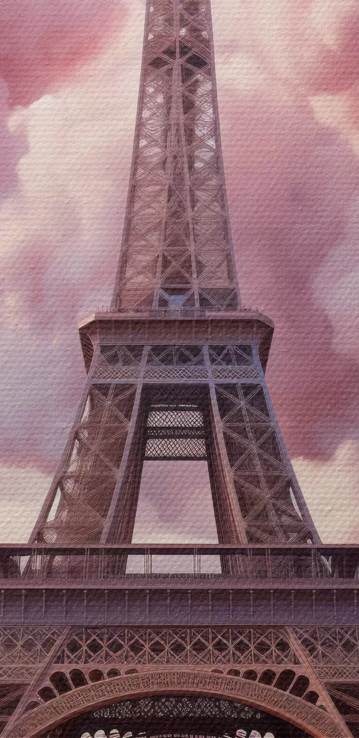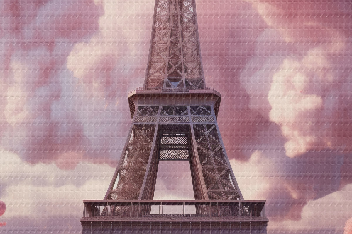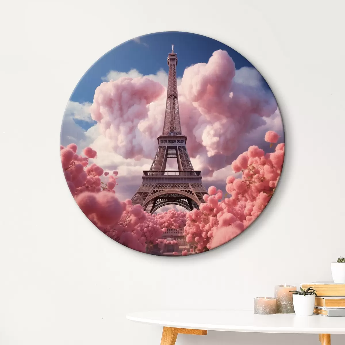 Ronde schilderijen Eiffeltoren in roze wolken in fantasiestijl Nr r45036