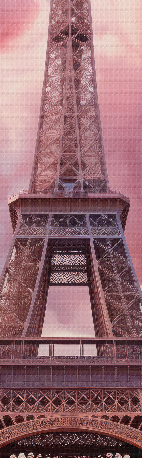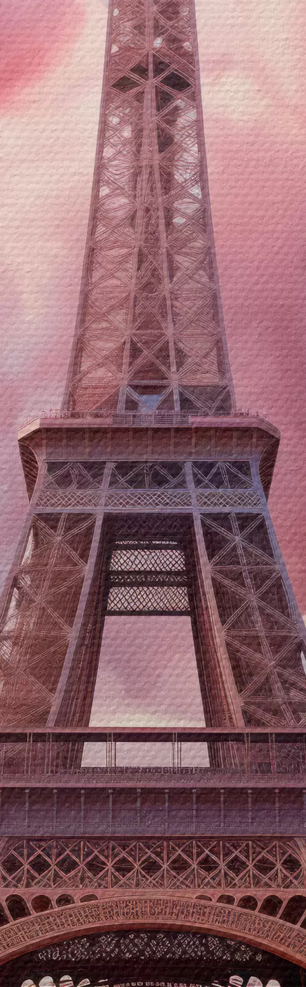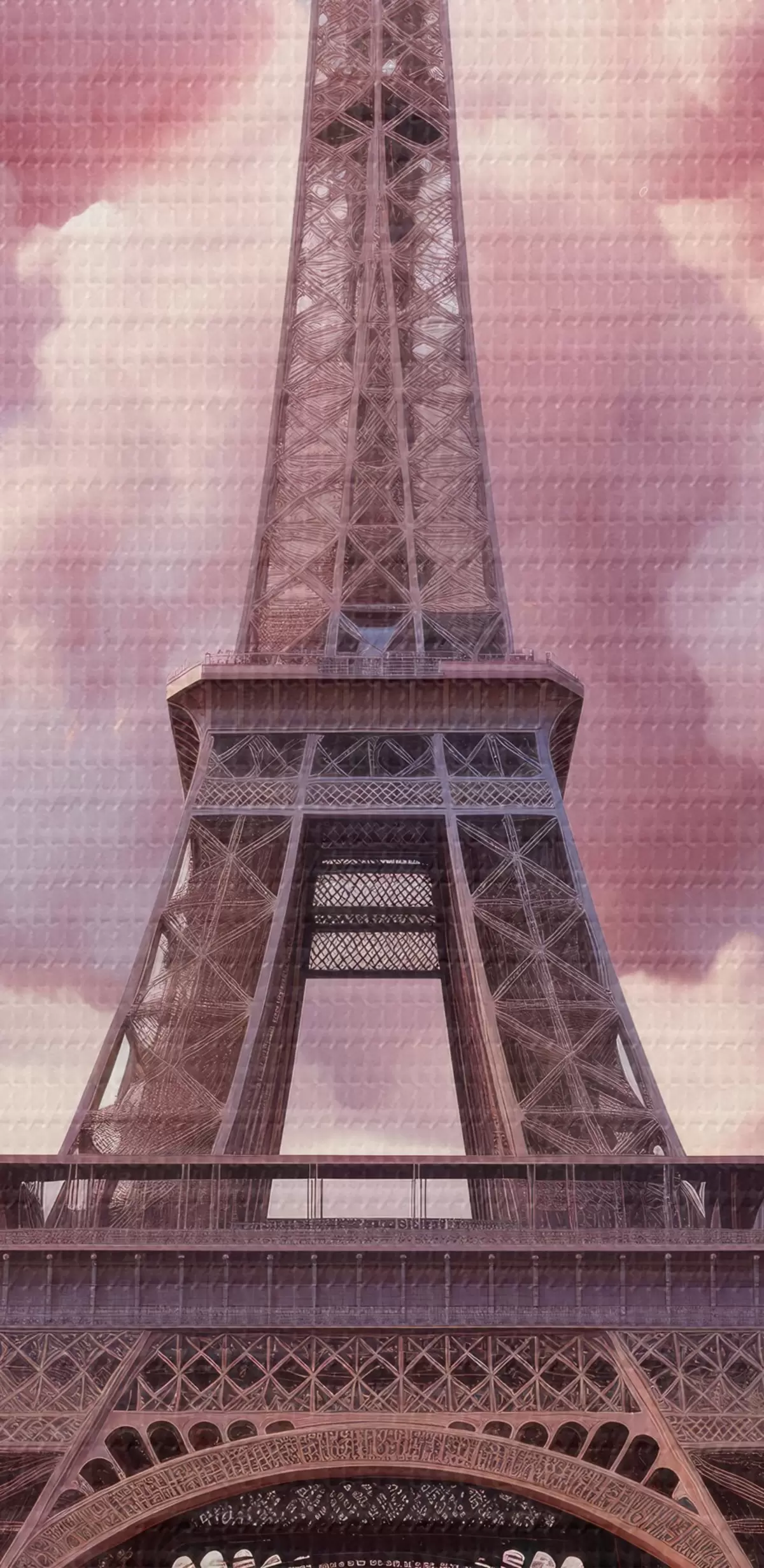 Ronde schilderijen Eiffeltoren in roze wolken in fantasiestijl Nr r45036