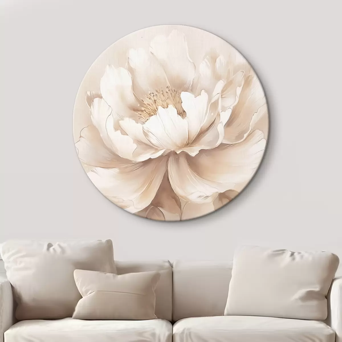 Ronde schilderijen Beige bloem met bladeren Nr r45082