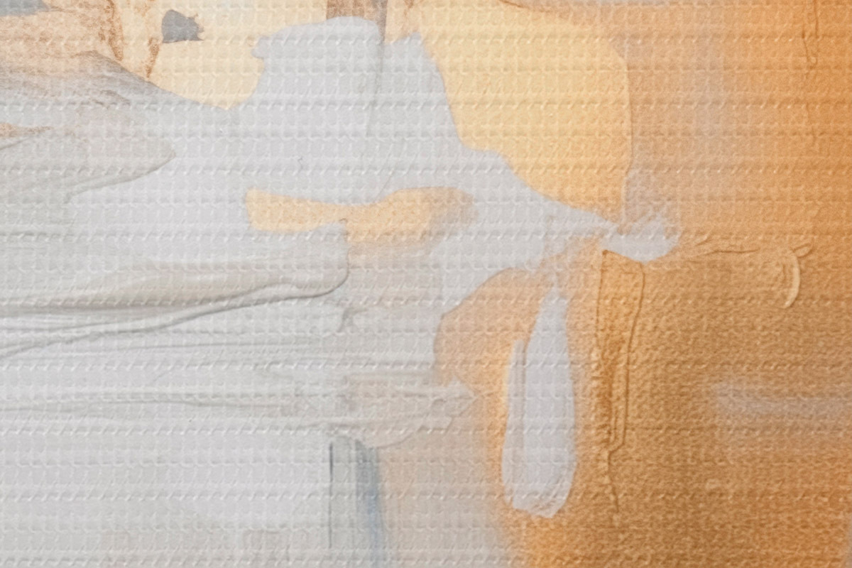 De fijne weving van draden op dit doek lijkt op het oppervlak van professionele schildersdoeken.