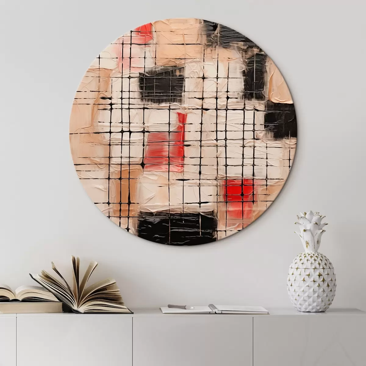Ronde schilderijen Abstractie met lijnen en imitatie van penseelstreken r45122