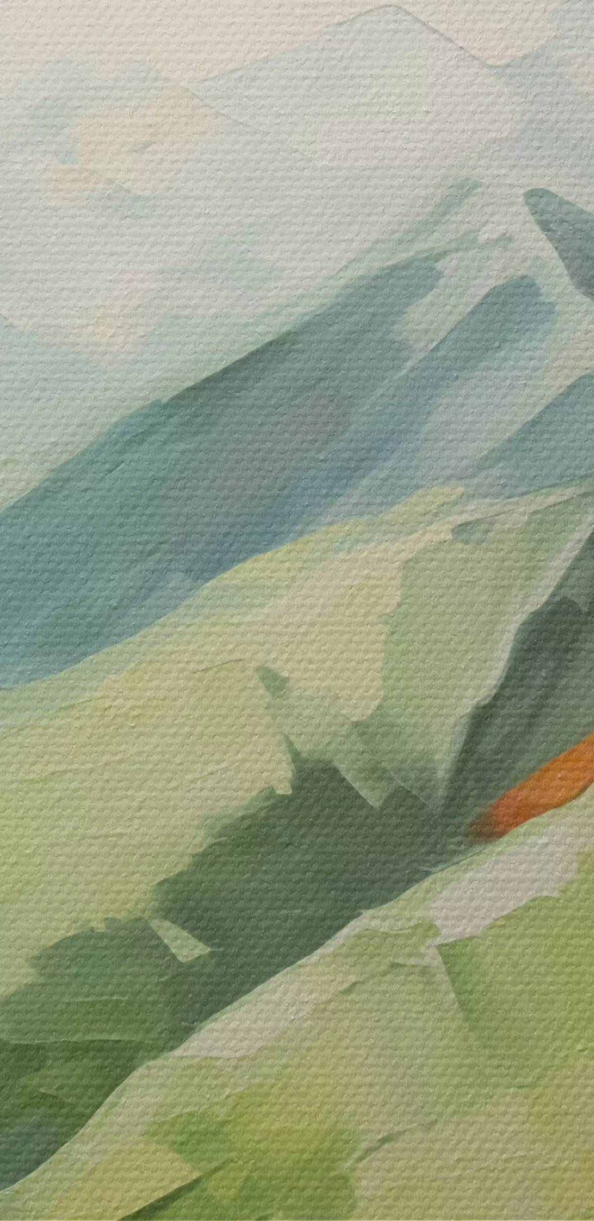 Het schilderij kan direct na ontvangst worden opgehangen. Het schilderij wordt opgespannen op een 2 cm breed houten spieraam.