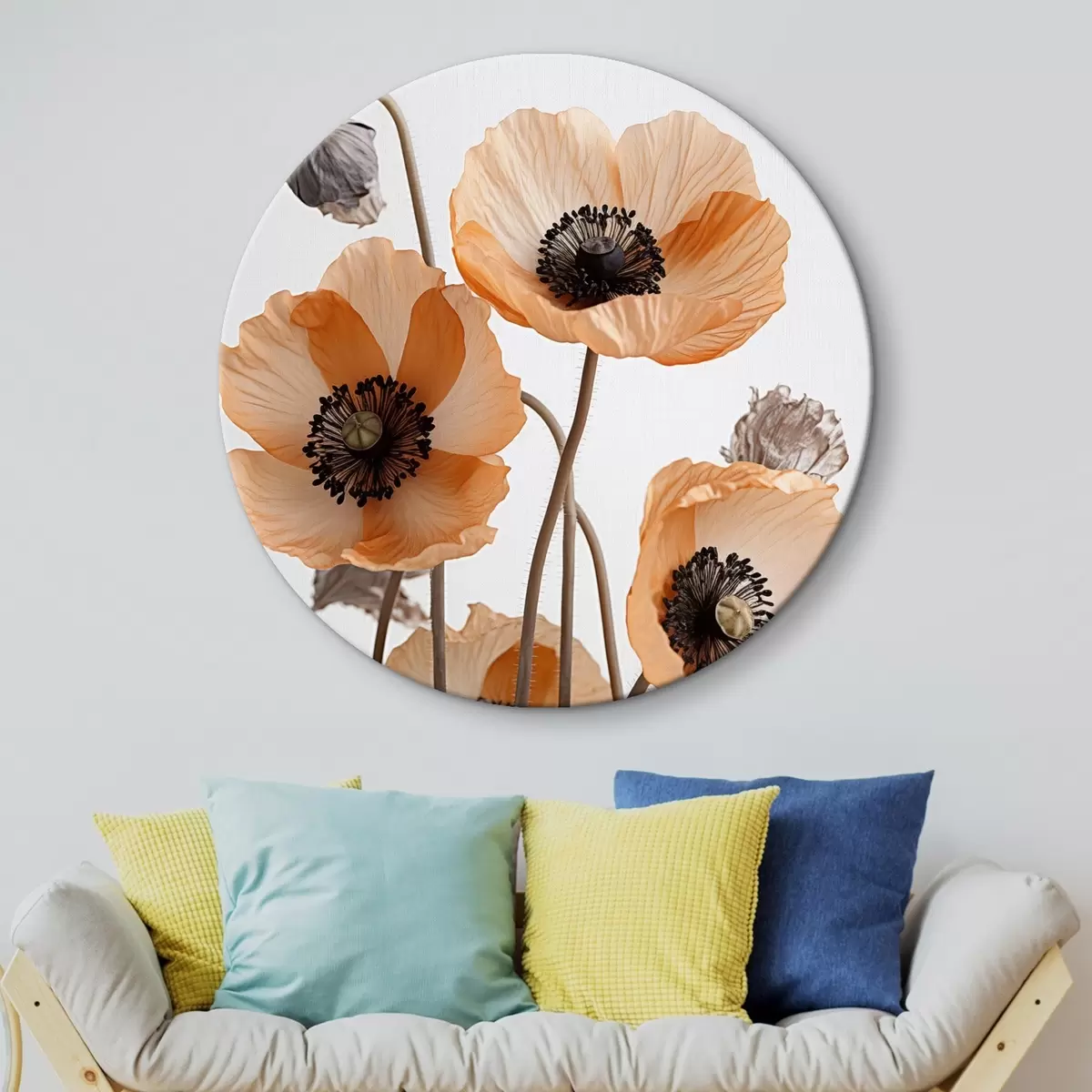 Ronde schilderijen Oranje klaprozen, gedroogde bloemen tegen een lichte achtergrond, zachte verlichting, delicate bloemblaadjes, bloemstuk Nr r45167