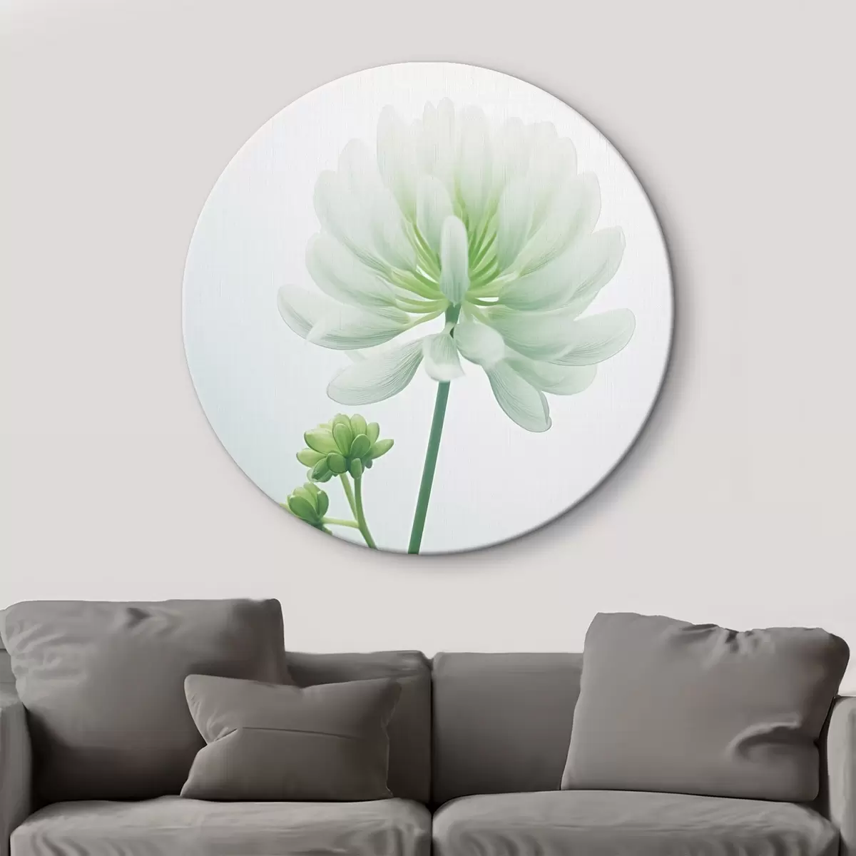 Ronde schilderijen Witte klaver bloem met groene stengel en bladeren, zachte verlichting, schone achtergrond, minimalistische compositie, botanisch Nr r45171