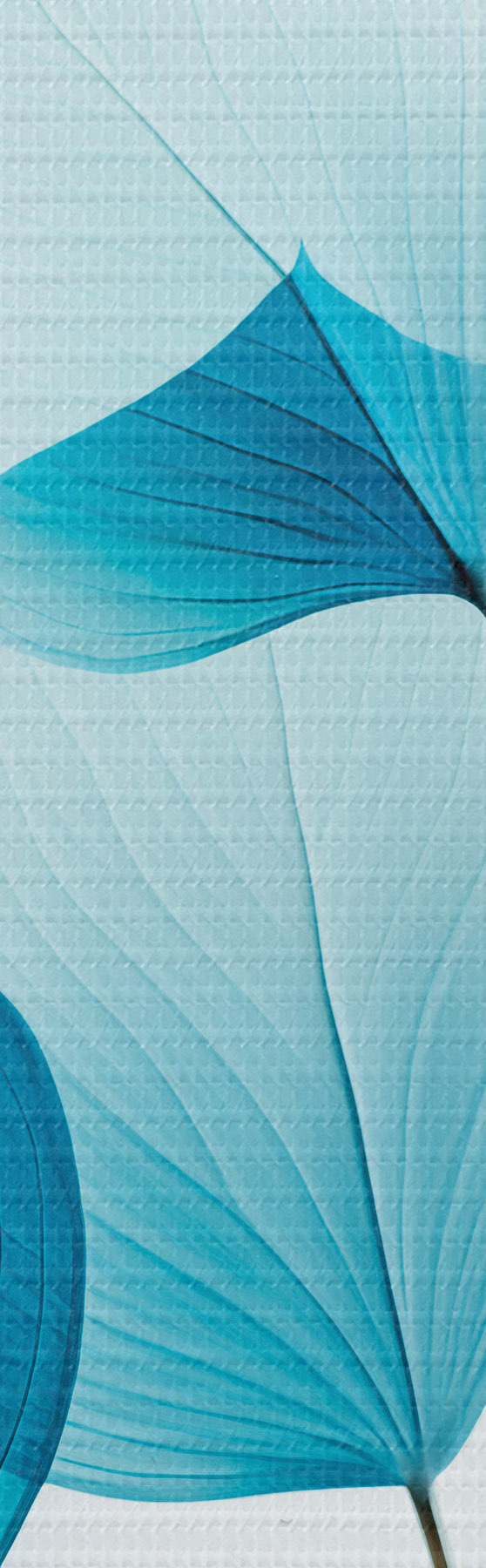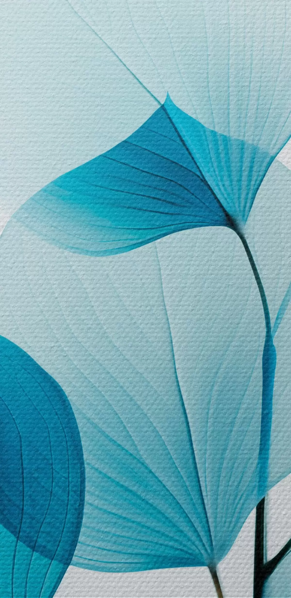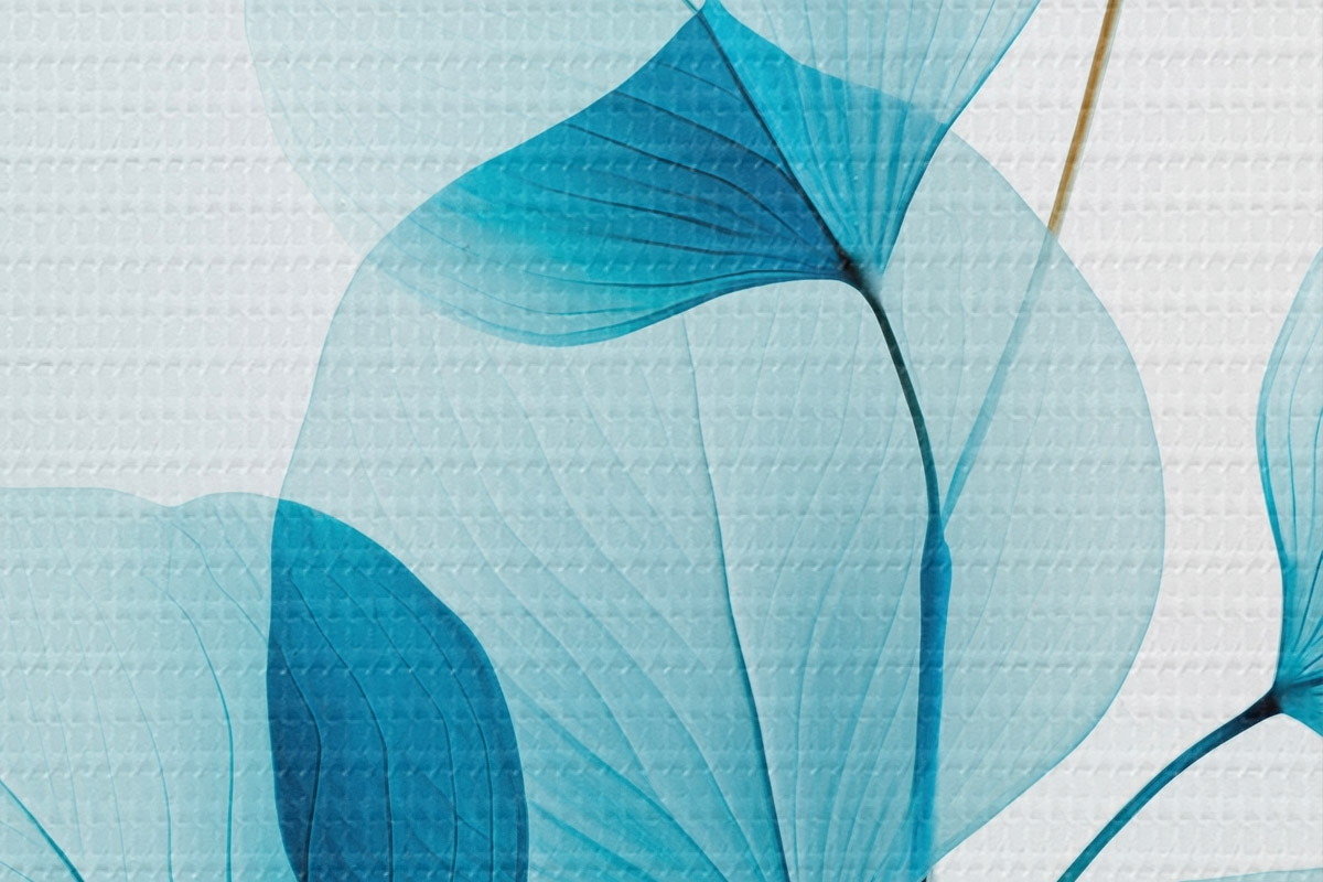 Ronde schilderijen Tak met doorschijnende blauwe bladeren, fijne nerven zichtbaar, lichte en rustige compositie, minimalistische esthetiek Nr r45175